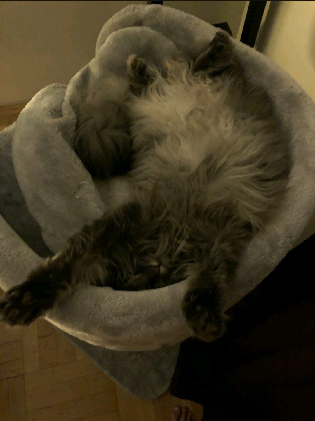 Köttbullepositionen... bra namn! Vi kallar vår för Sälen när han ligger så där, men det är kombon stil+färg som gör att han ser ut som en knubbsäl.Snigla skrev: