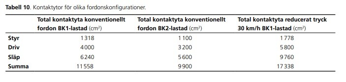 Om jag räknat rätt utsätter en fullastad timmerbil marken för (ungefär) samma belastning som en häst i rörelse (två hovar i marken). Detta gäller alltså den statiska belastningen per ytenhet.