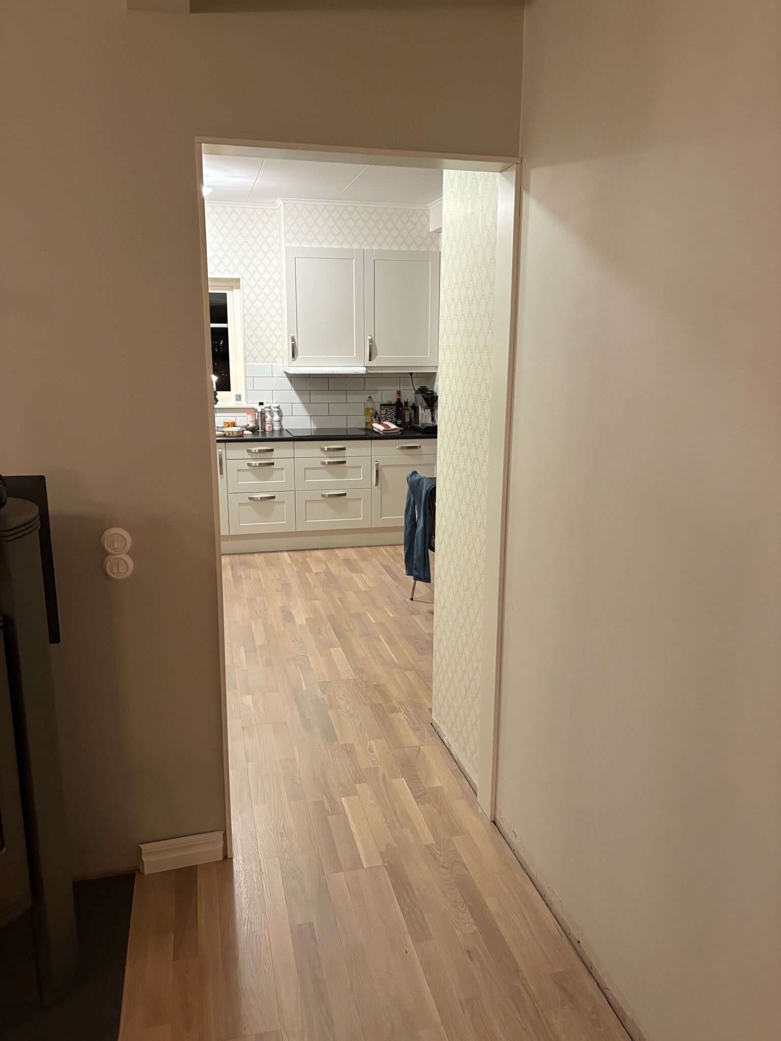 Idag sitter det smyg som ramar in öppningen men öppningen slutar i väggen så vet inte hur jag ska göra med allmogelist runt dörren.
