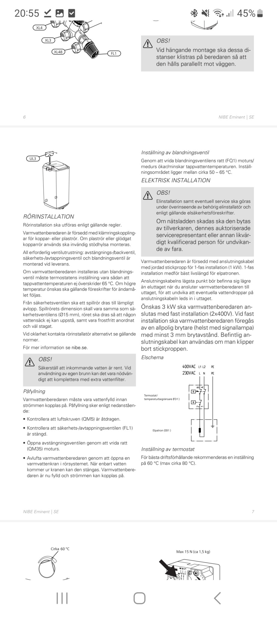 En annan intressant grej jag märkte på eminente var att det verkar som att Nibe har lättat lite på kraven och skriver inte att den behöver föregås av en allåolig brytare utan bara att det ska vara en "fast" installation om man ska köra 400v