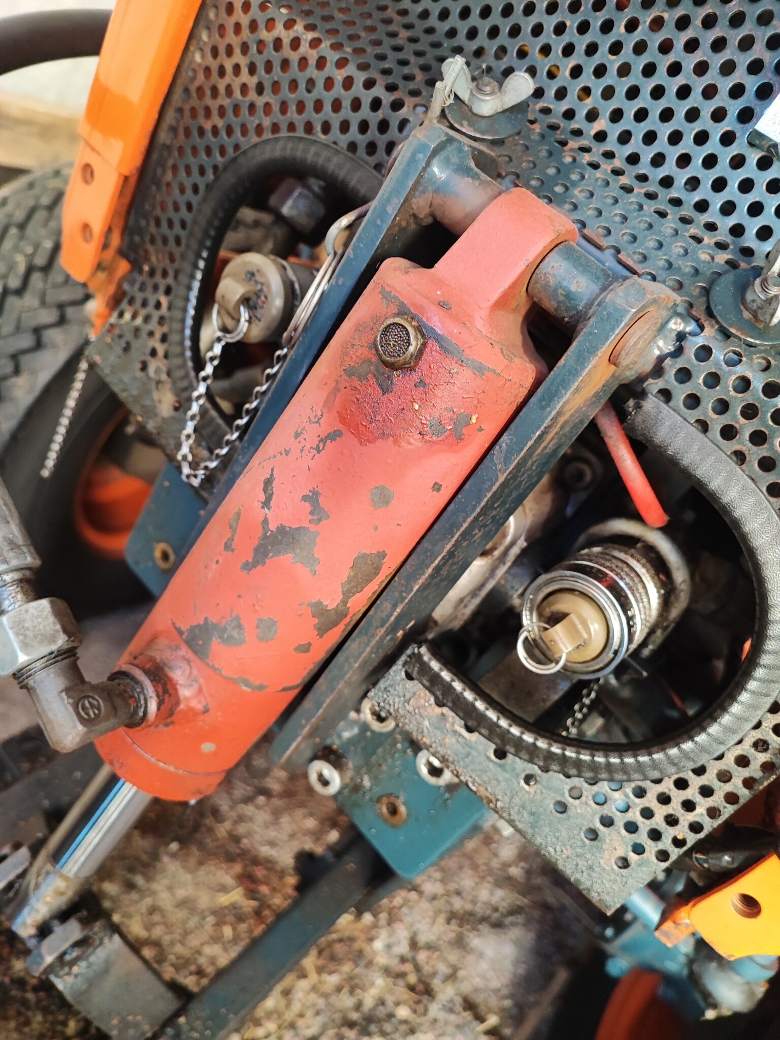 Kollade på en snöslunga som suttit på en lika traktor, själva slungan är hydraul driven med 2 slangar som kopplas in här (tror jag)
