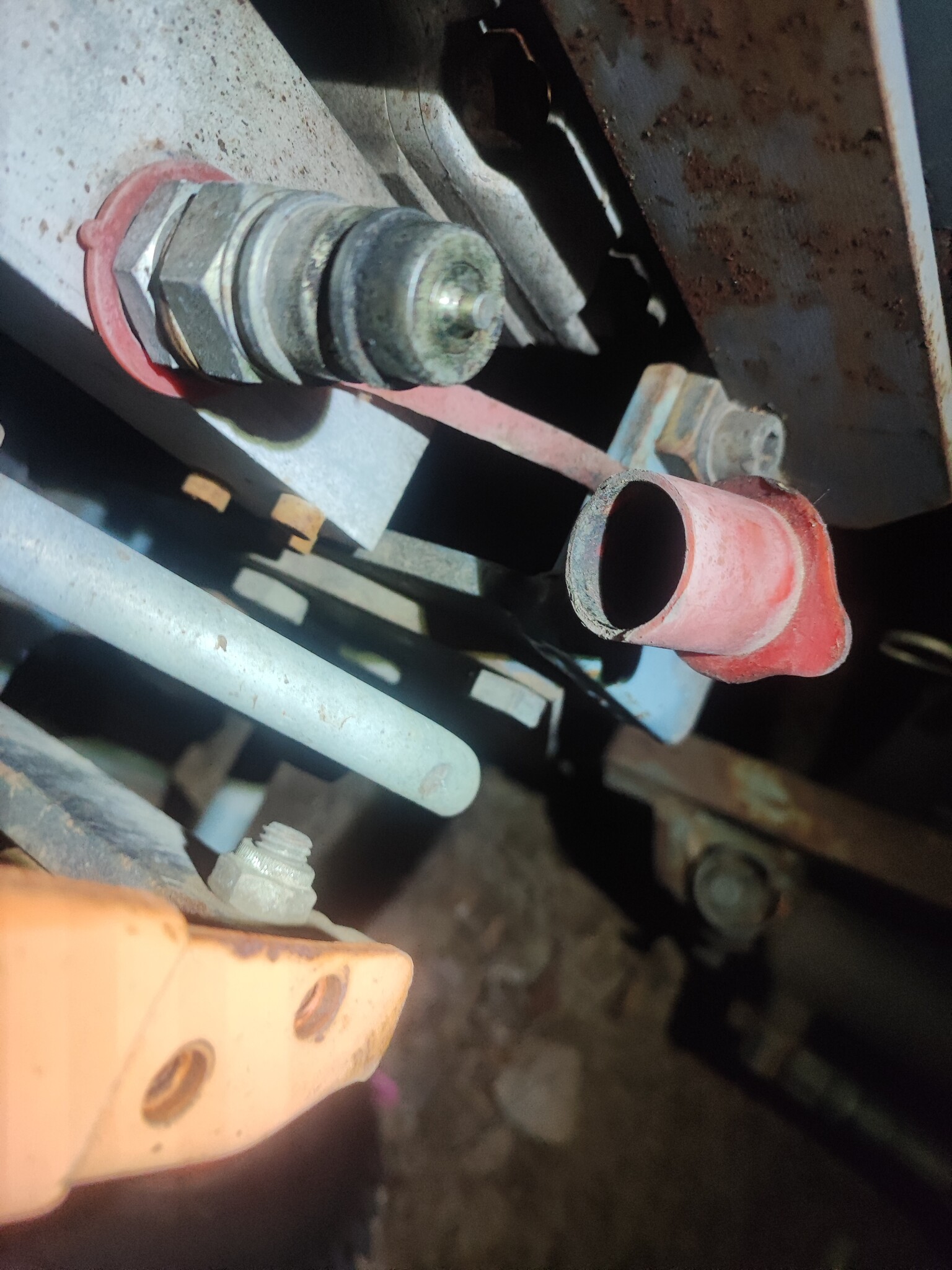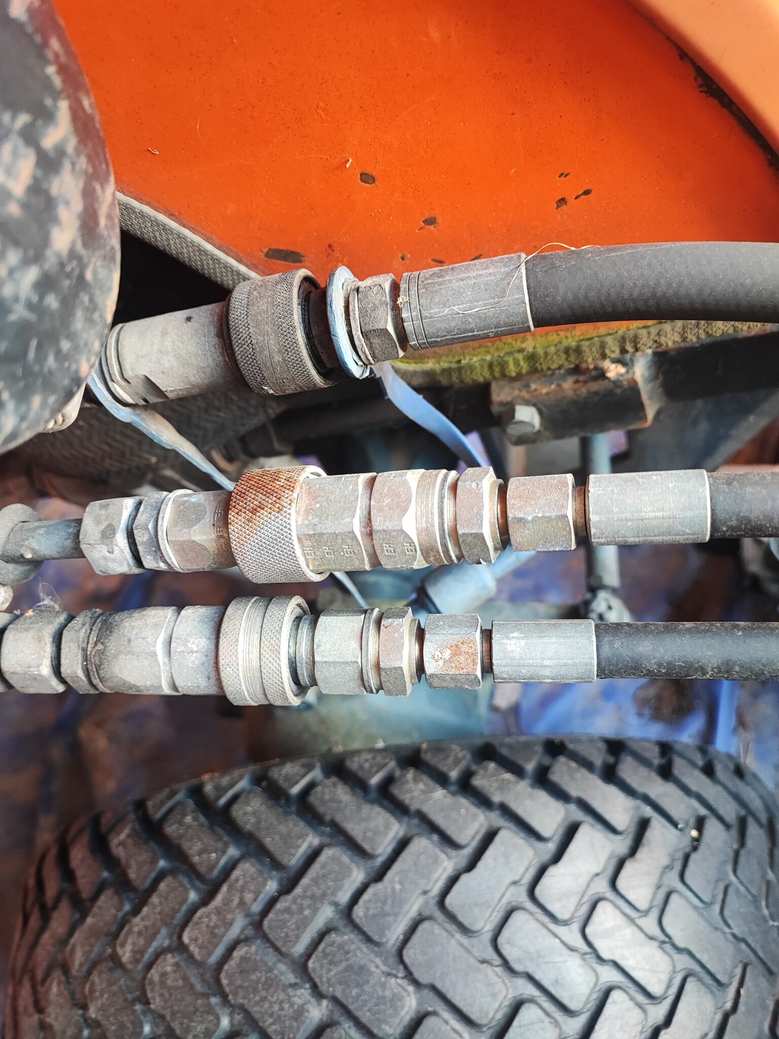 Men slangen sticker väl upp till vänster och går in i hydrauluttaget där det sitter 4(?) snabbkopplingar?