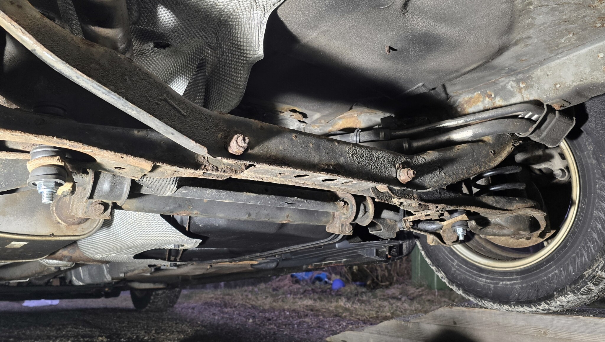Skruvarna till bakre krängningshämmaren hade gått av så det fick bli till å montera nya i helgen.