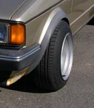 Jag tycker det blev riktigt snyggt, men undrar om bilen går igenom besiktningen om däcken inte finns med i listan över rekommenderade dimensioner.