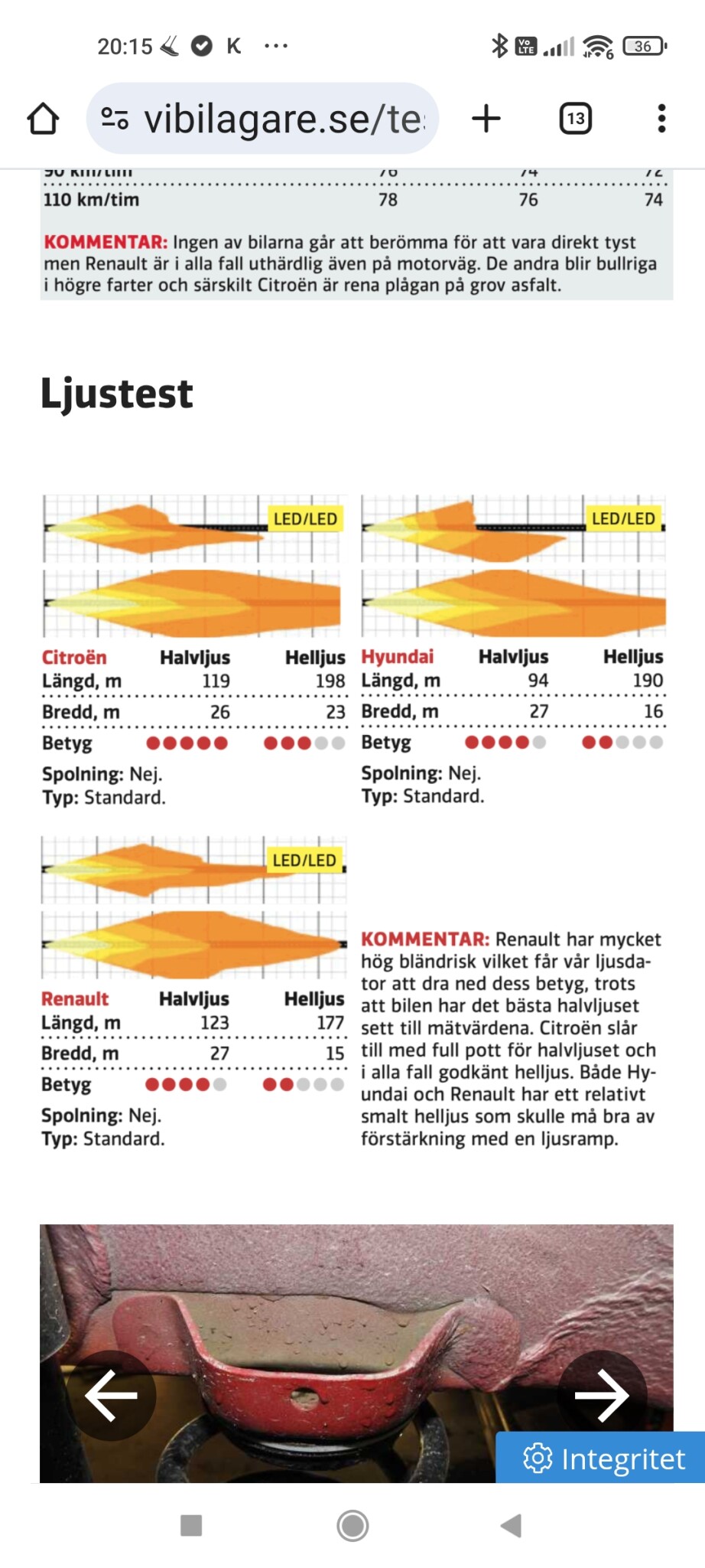 Kolla in ljusbilden halvljus på Renaulten och jämför med de 2 andra.