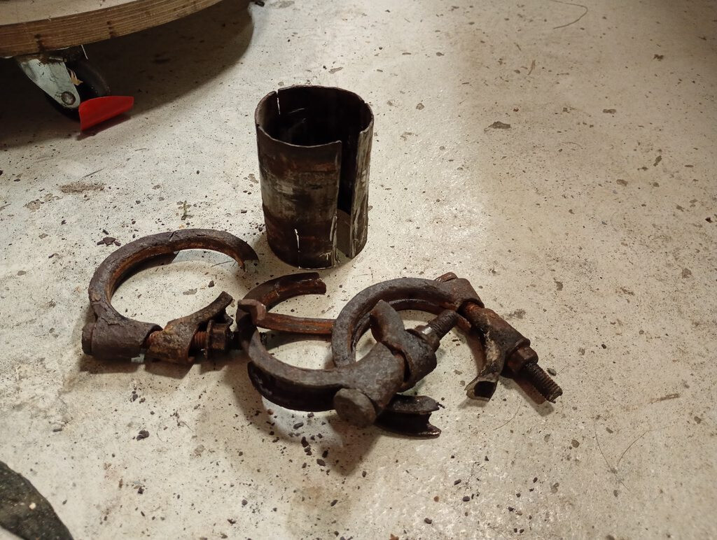 Fixat avgasröret på Volvon, på ett ställe. Sen jag köpte den har jag hört den läcker där ungefär mitt under bilen. Det fanns en reparation där som var lite udda, två rör ovanpå varandra och det ville inte hålla tätt.