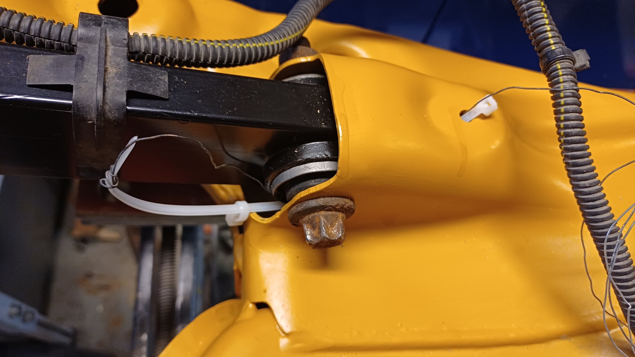 För mig har det fungerat bra med att dra ett buntband i en cirkel på baksidan av plåten och ett andra buntband runt det första buntbandet, genom hålet och runt en kabelslang som går över bakaxelbalken till hjulsensorerna till ABS.