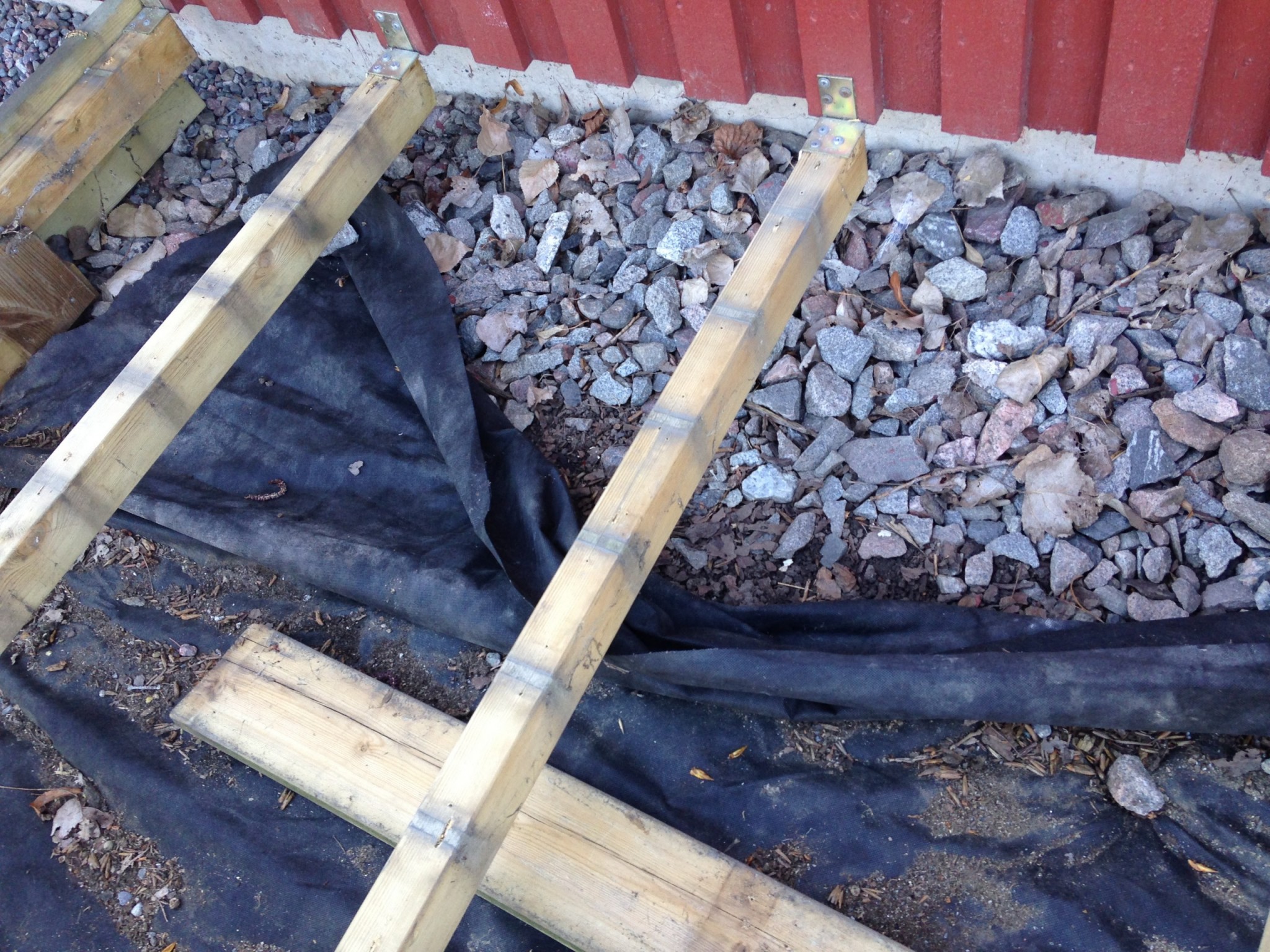 (det är alltså tidigare ägare som gjort nuvarande konstruktion. Under fiberduken är det jord - det grövre stenkrosset antar jag är till för dränering?)