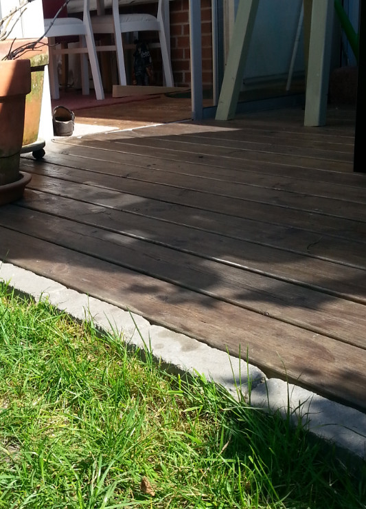 Däremot tycker jag det egentligen ser ganska bra ut för att ha blivit byggt för sex år sen. Det är nästan så att man börjar ifrågasätta nyttan med impregnerat konstruktionsvirke i en altan, för det där verkar så färskt så det lär hålla många år till.