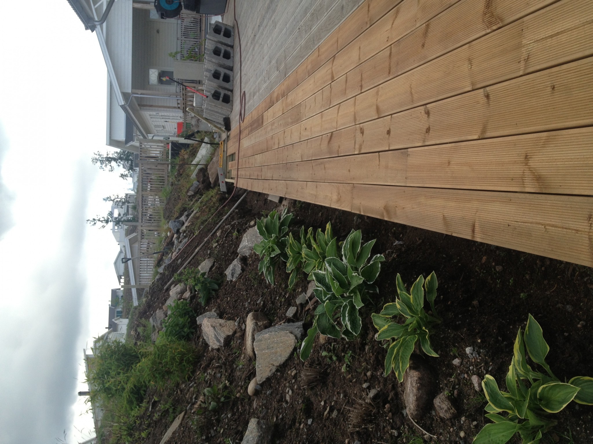 Tips på en bra "mur" som stoppar lite jord som faller ner? Helst inte stenmur då jag använt detta på flera andra ställen och vill jobba med något enklare här- byggtimmer? Handlar om kanske 40cm höjd