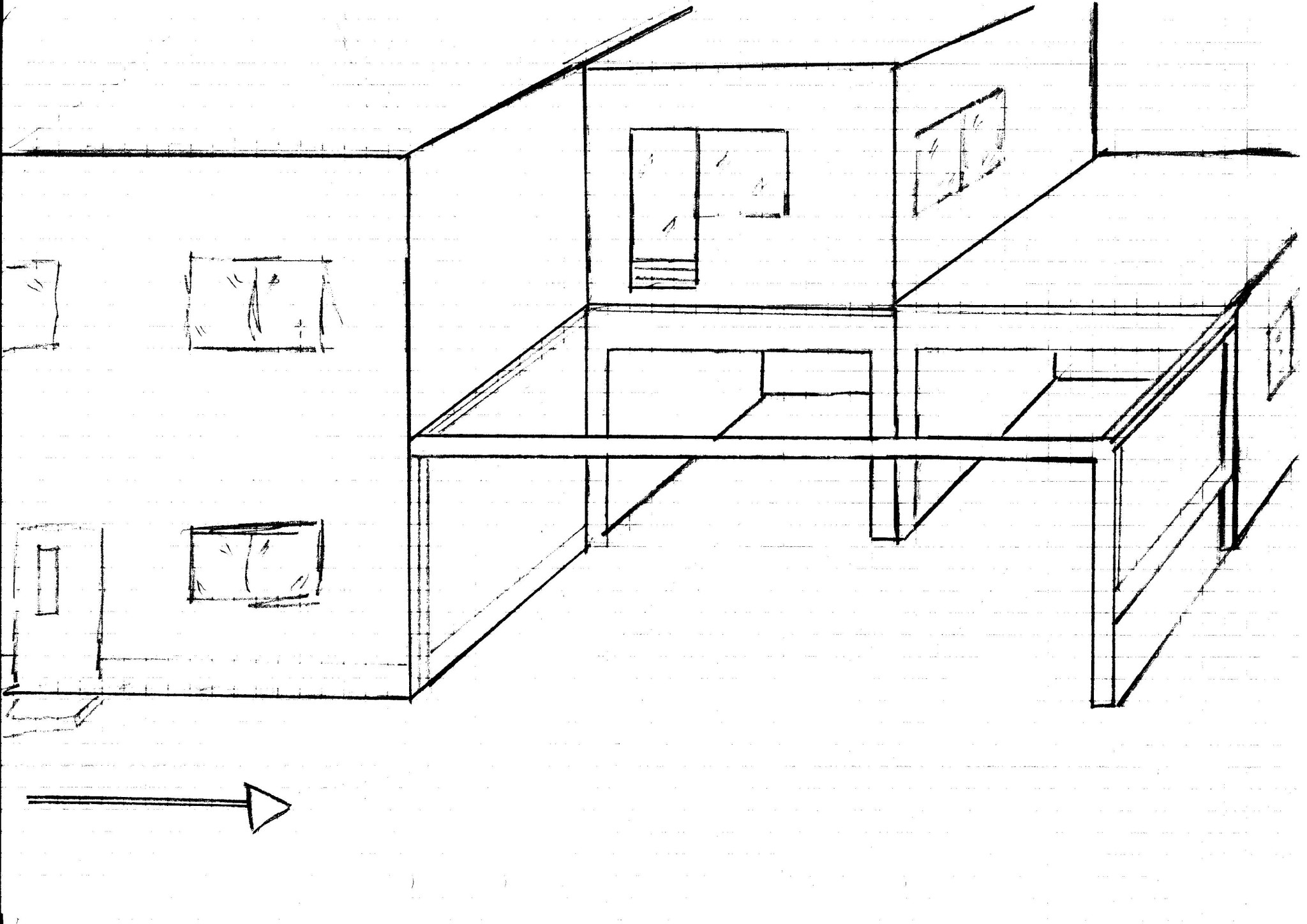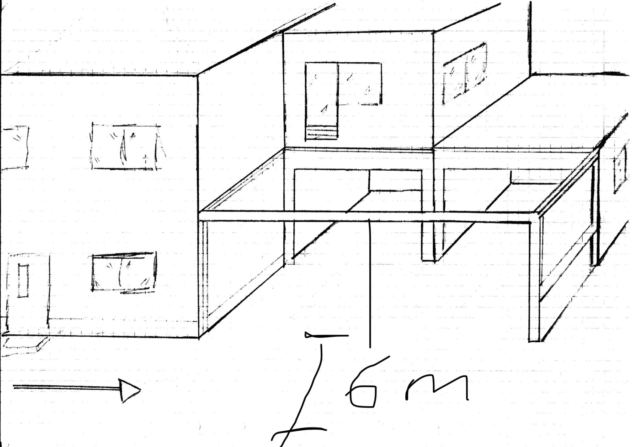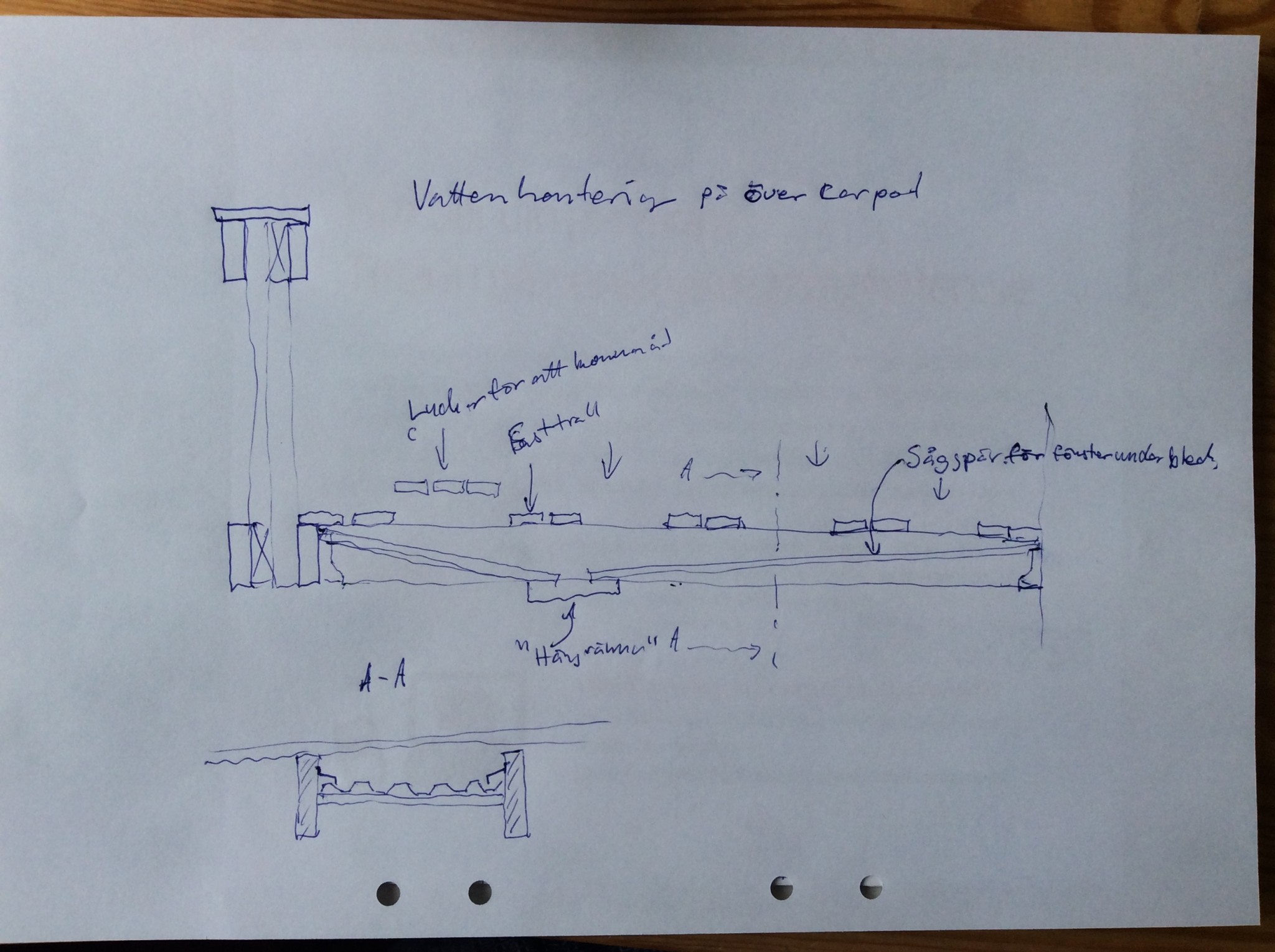 Några skisser på hur det kan lösas. Sitter vid köksbordet och har tillgång till papper och penna.