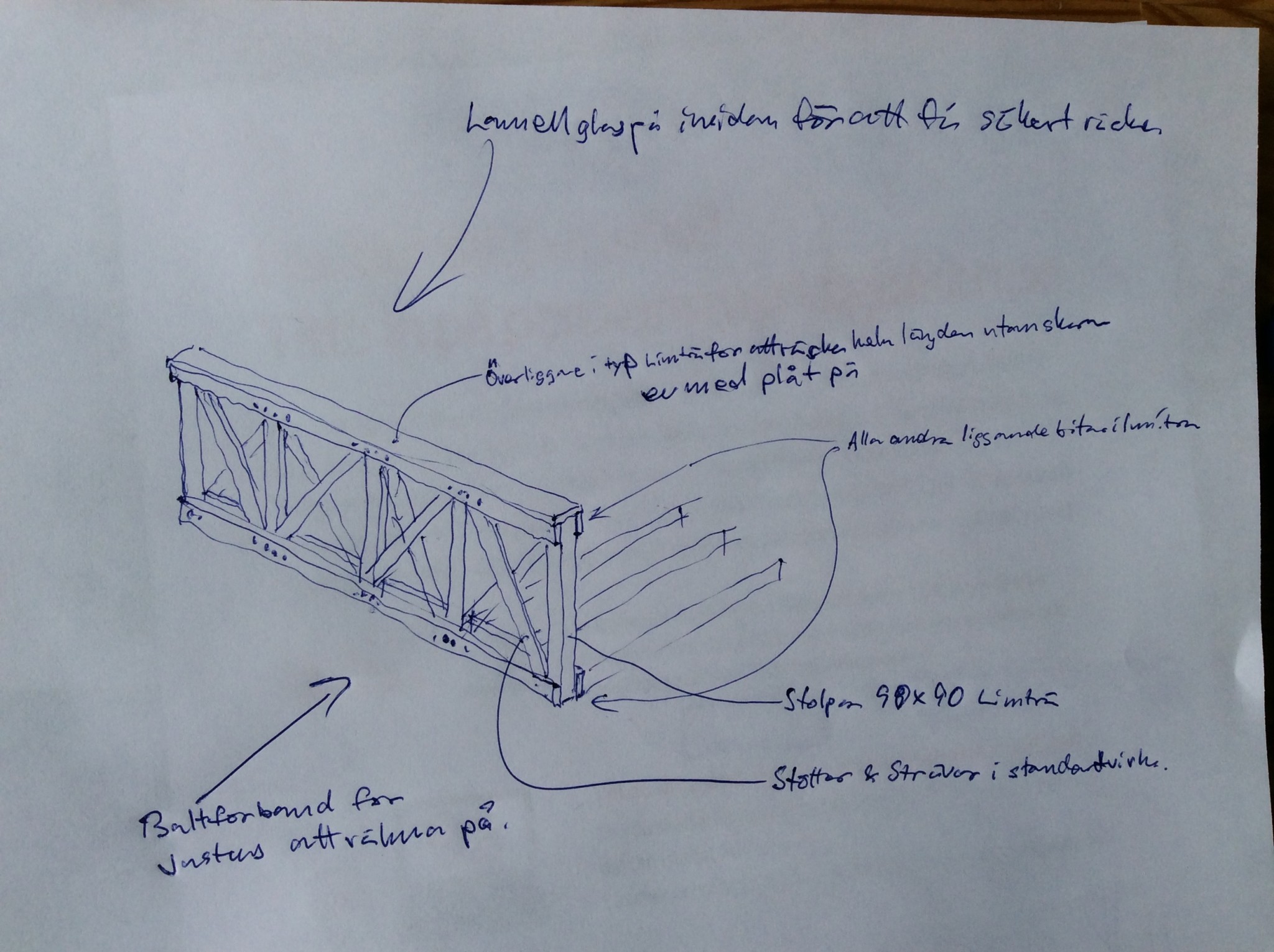 Jag tar väldigt tacksamt emot även förslag på de mer oortodoxa lösningarna också. Vi har en liten kille på 3 år och en till på väg så det kommer nog bli lite högre räcken skulle jag tro. Har inte riktigt kommit dit ännu då jag kört fast lite i konstruktionstankarna