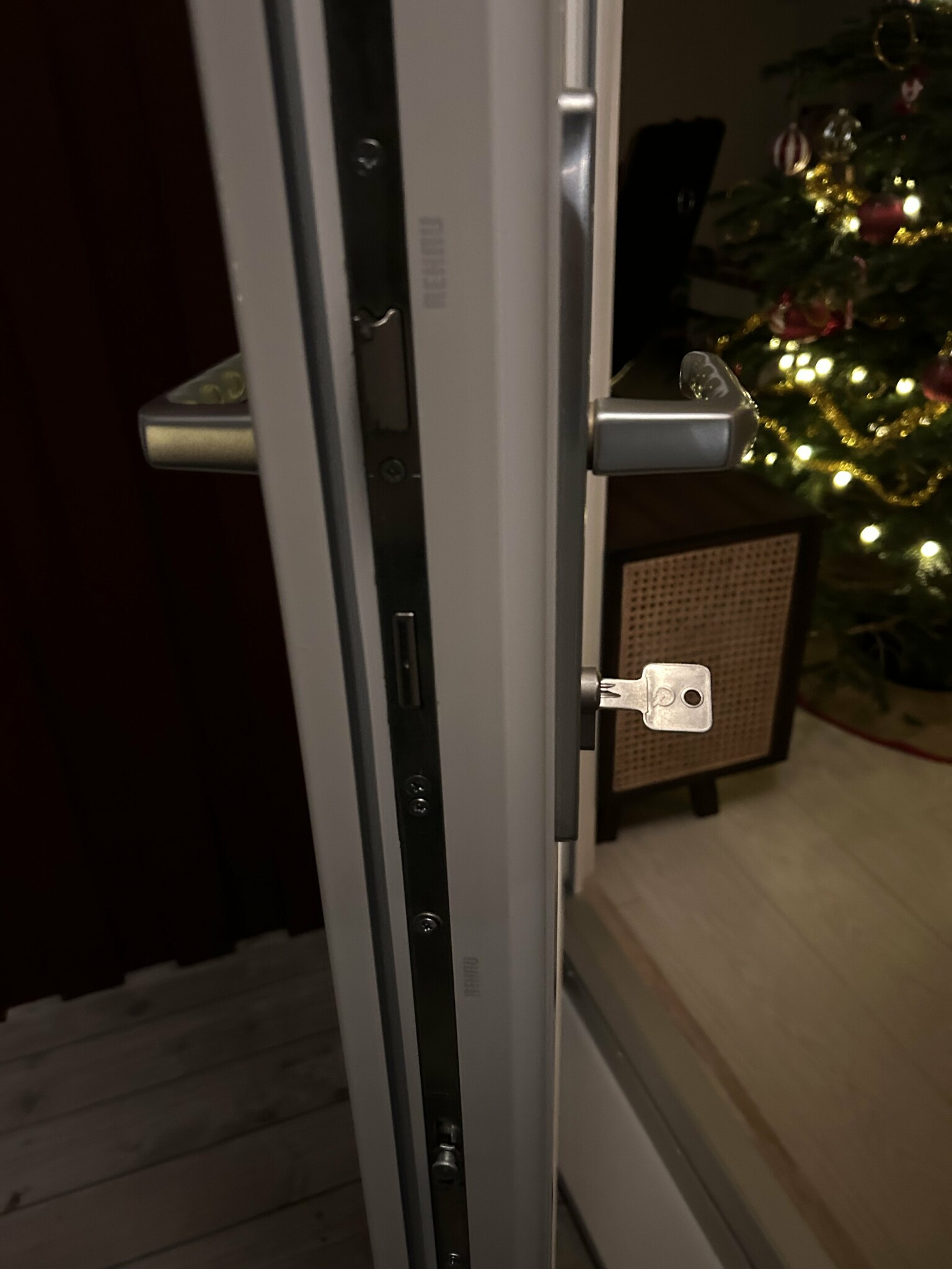 Jag har en altandörr från 2018 som man låser genom att dra upp handtaget i två steg och sen vrider om nyckeln inifrån.