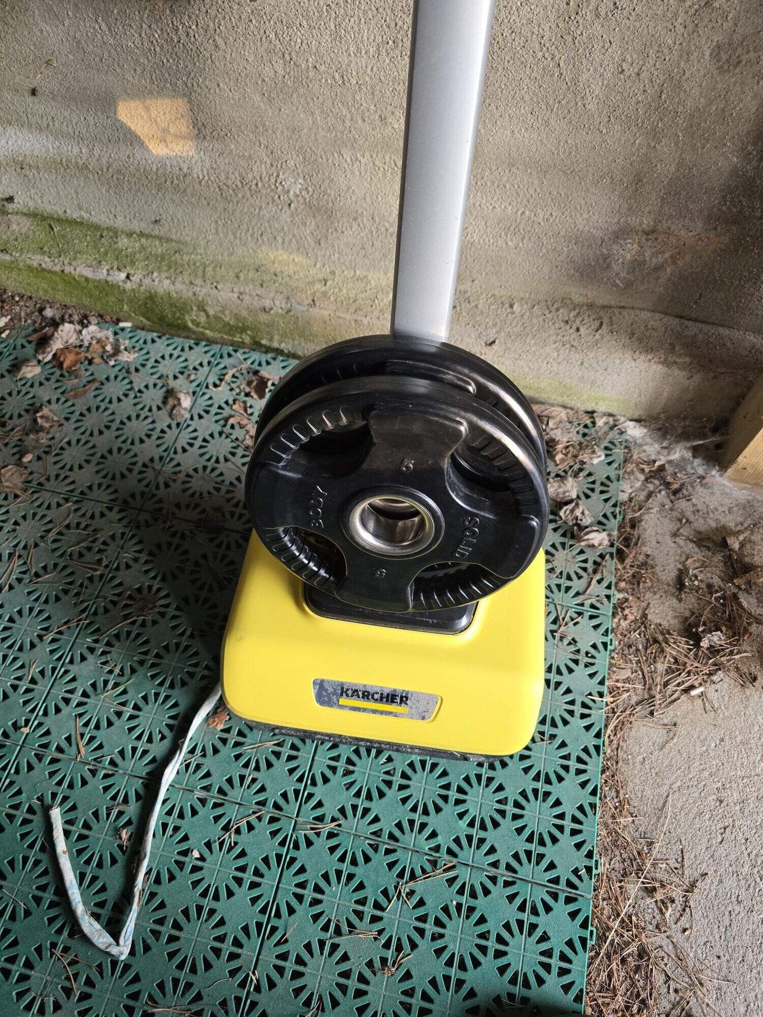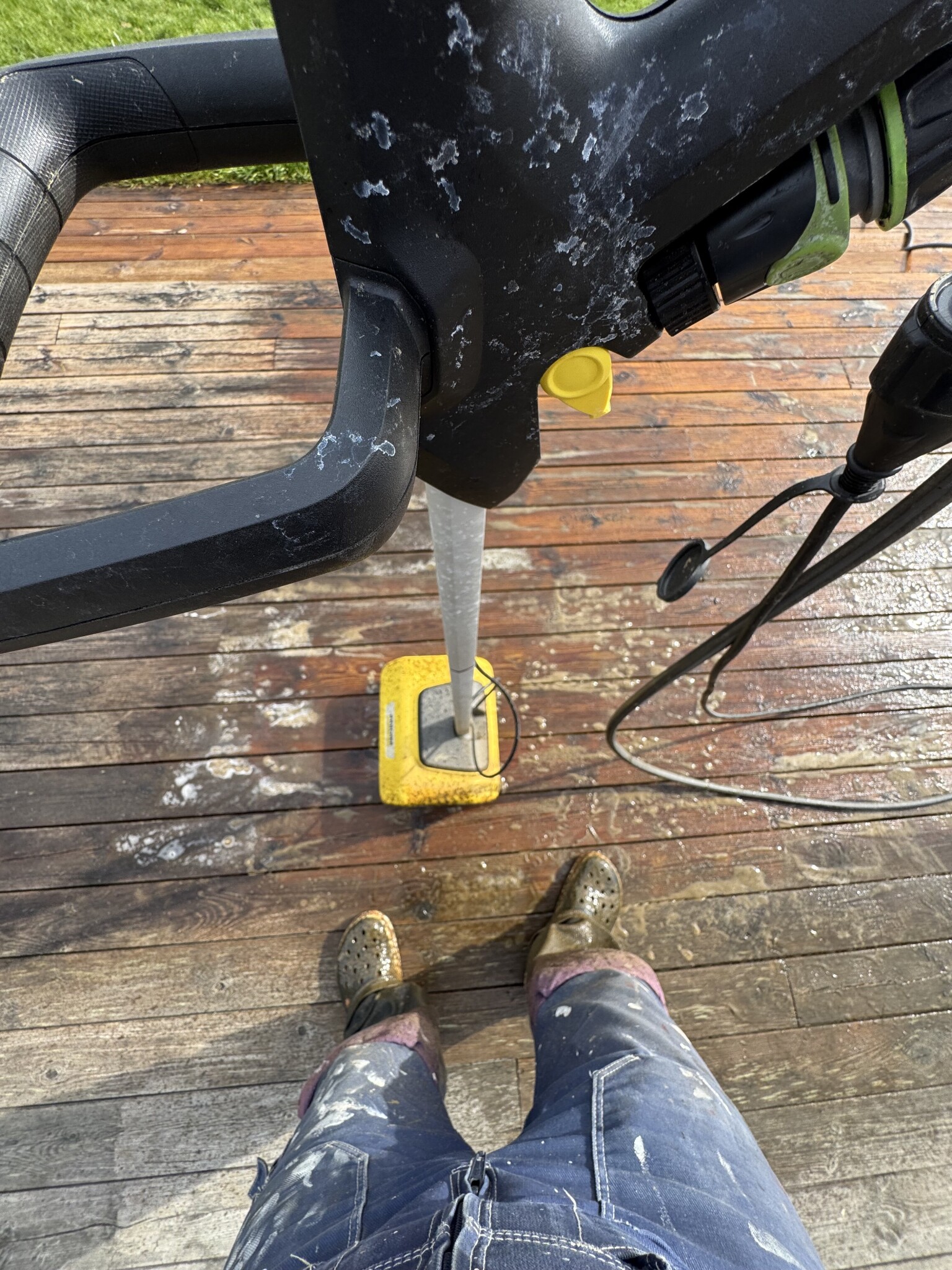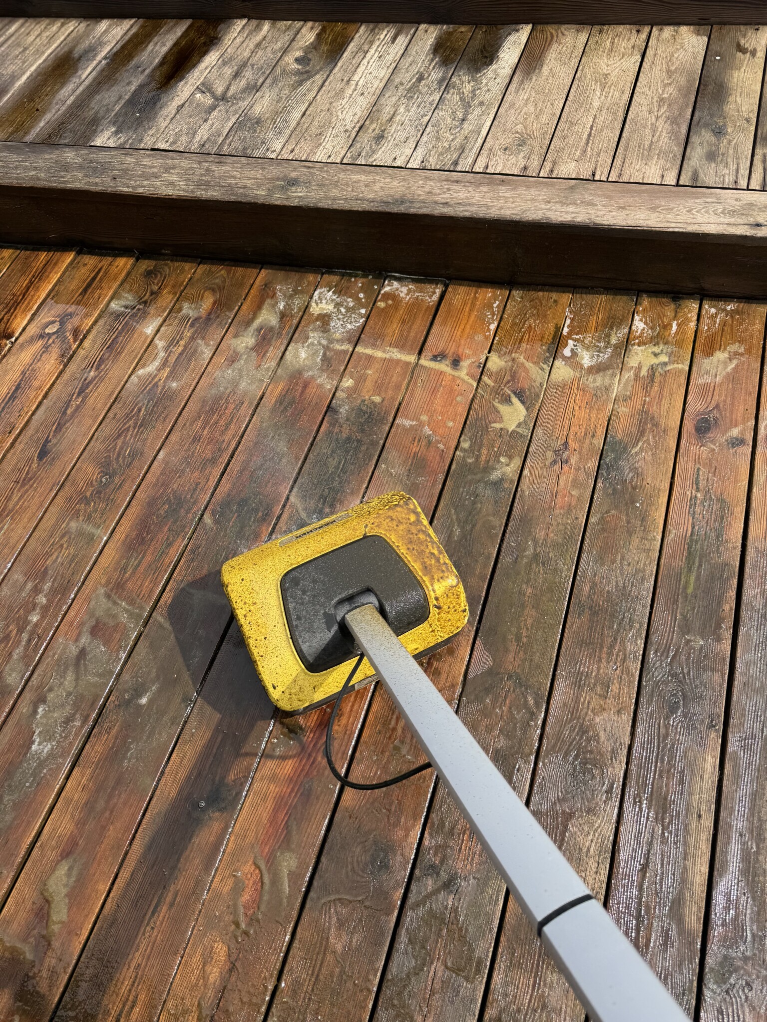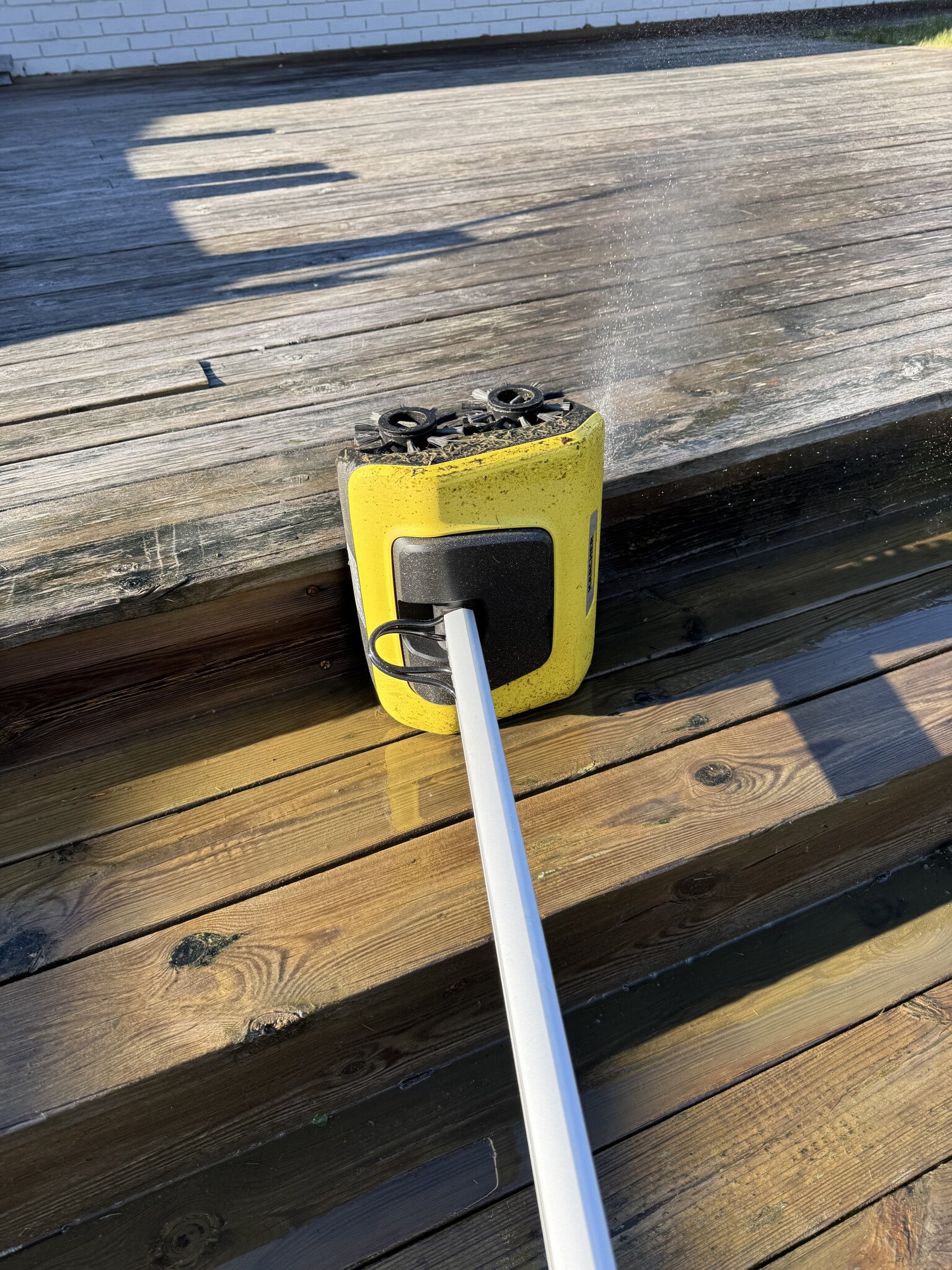 Jag hade en del partier med svåra svarta fläckar som jag skrubbade med en grov skurborste på skaft innan jag började med maskinen. Märkte att det faktiskt var enklare med skurborsten på de svåraste fläckarna än att stå och nöta med Kärchern. Vissa partier valde jag att tvätta två gånger.