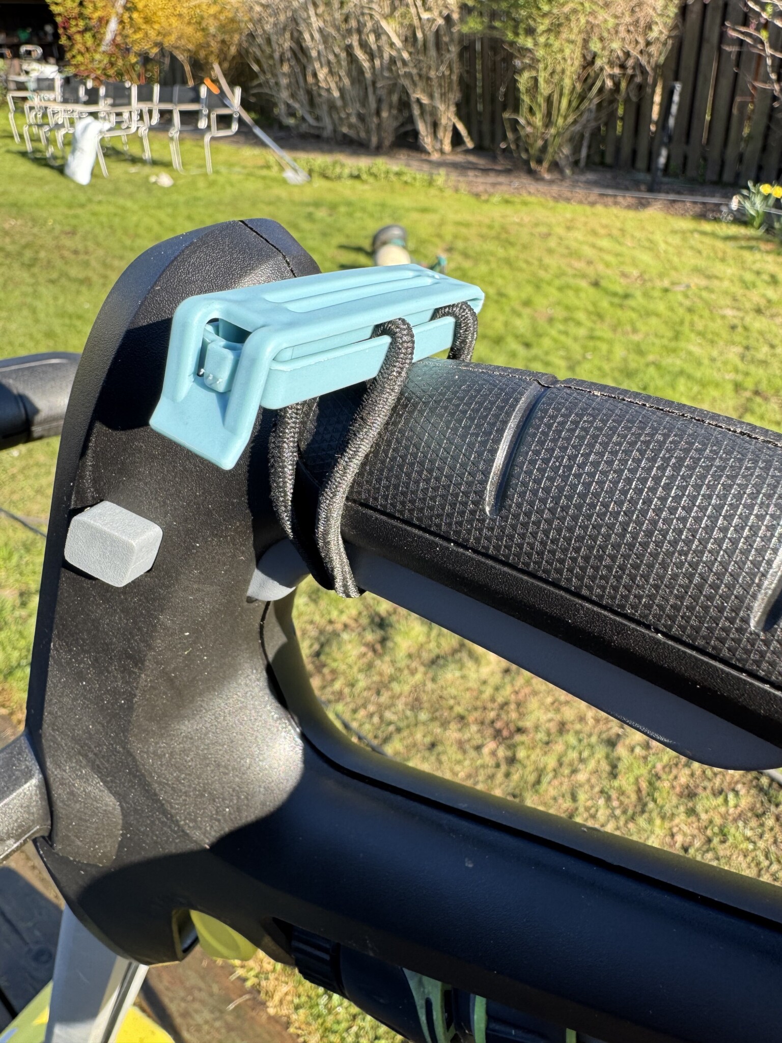 - Det går inte att låsa handtaget när maskinen är igång och man får snabbt kramp i händerna. Detta åtgärdade jag med en hårsnodd och en påsklämma runt handtaget som kan hålla igång maskinen av sig självt.