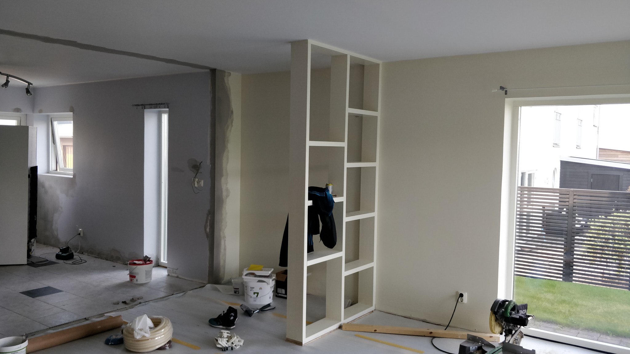 Några år efter första inflyttning så fick man problem med vikten av badrum och var tvungen att förstärka bjälklaget med en spalje i förstärkt virke. (Lång historia). Ytterväggarna är lättbetong och bjälklag är I-balkar i virke och masonit på stålbalk i mitten av husets planlösning.