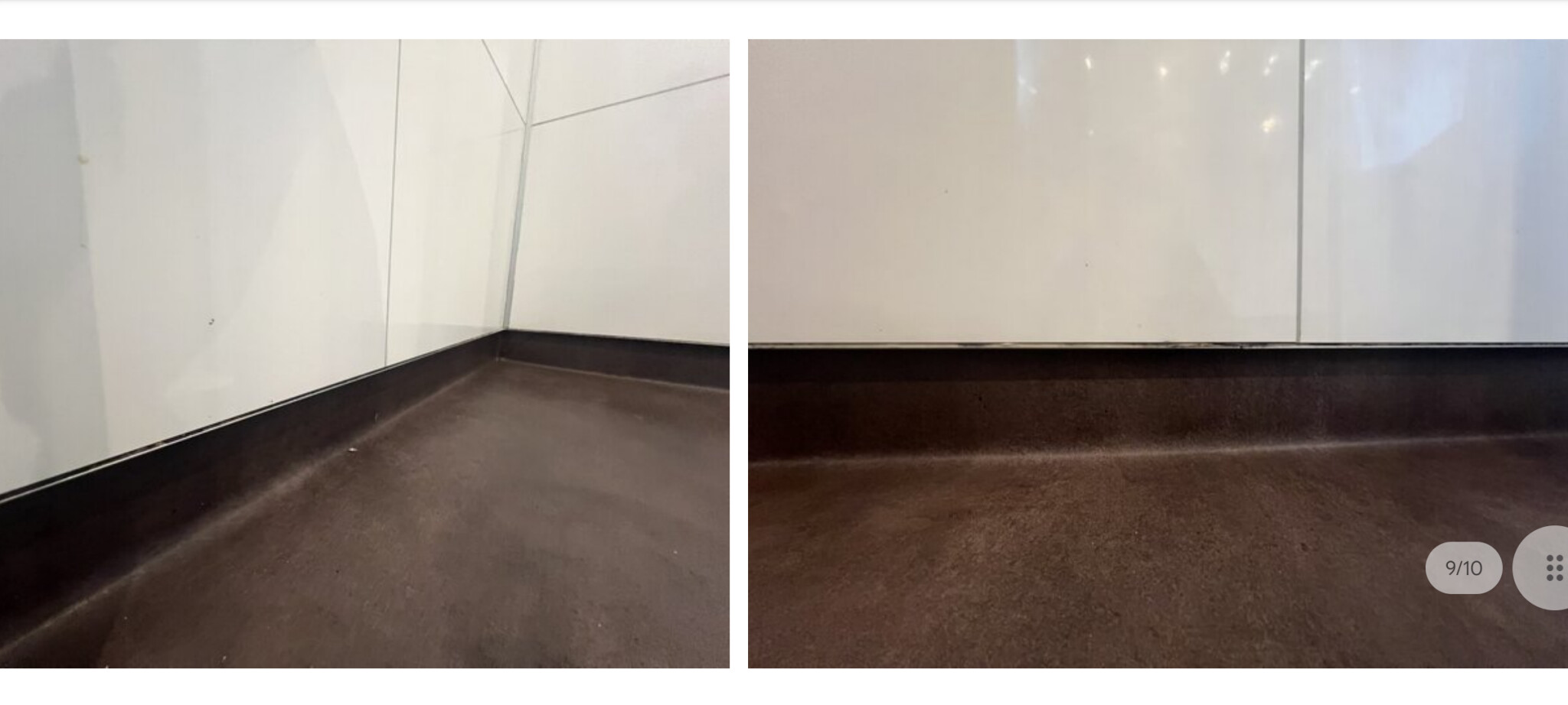 skivorna på två av väggarna har blivit fuktskadade i underkant.