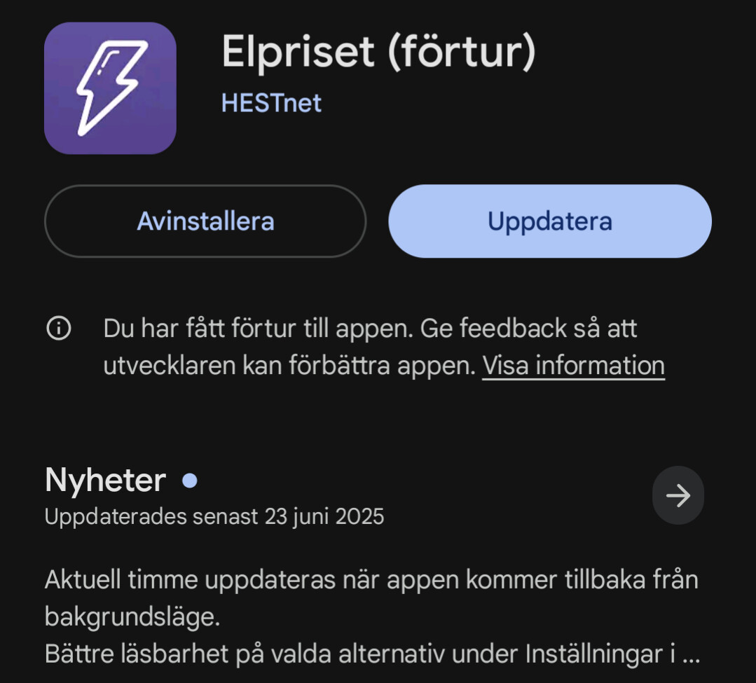 Tack för hjälpen ni som varit med och testat! Jag har släppt 5-6 nya versioner under tiden med mindre ändringar och buggfixar efter feedback från er 👏🏼. Jag har nu haft "minst tolv testare under 14 dagar" och har kunnat ansöka om att göra appen tillgänglig för allmännheten. Hoppas det går vägen!