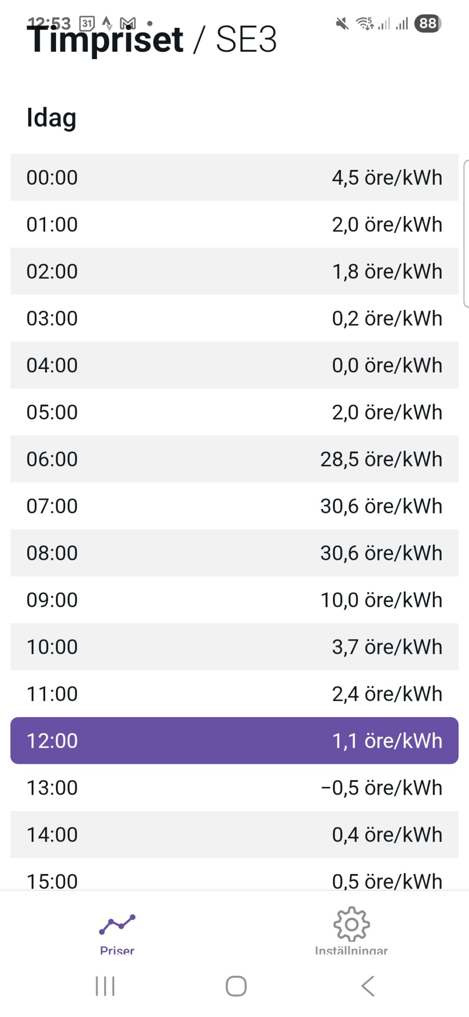 Jag tröttnade på att inte hitta supersimpel app för att visa timpriserna på el som passade mina behov. Så jag byggde en själv.