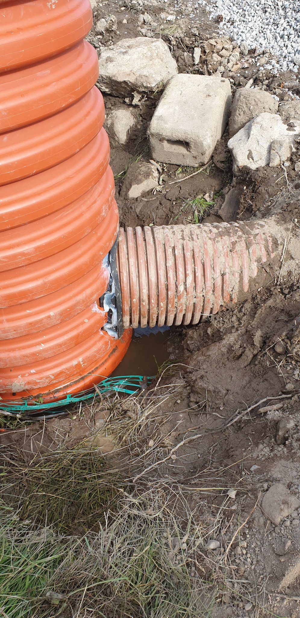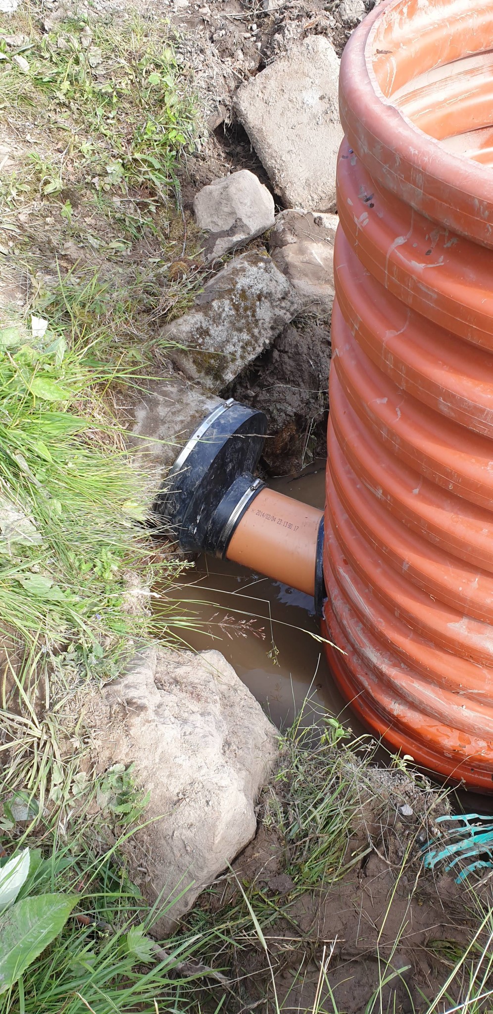 Vidare en 315 manchett till vägtrumman, men jag tycker den ser för kort ut för att gå att använda till det rör som nu fungerar som brunnen. Den stående brunnen är 680ca.