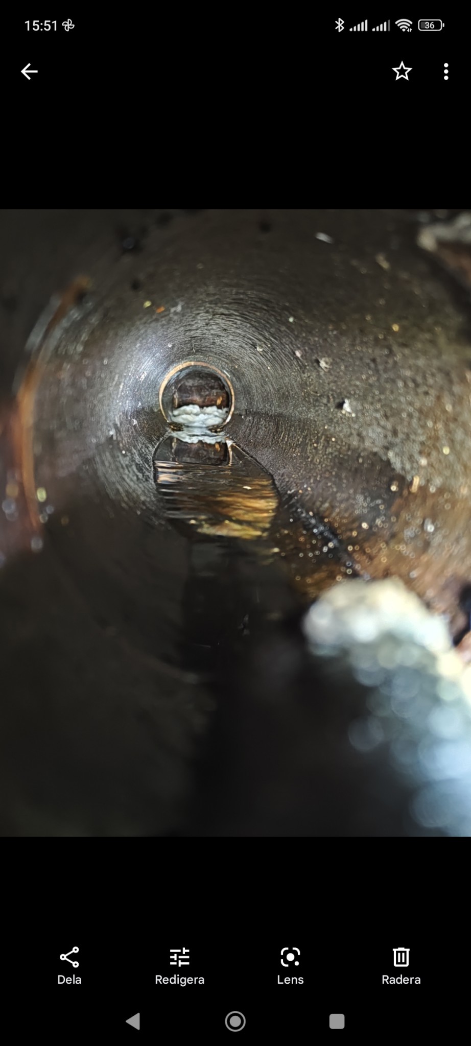 Mina var som nya när tjocka avlagringar på 1-2 cm var borta. Rören i sig var väldigt fina men skarvarna började läcka. Brunnarna hade nog hållt 20 år till minst.A AG A skrev:Mina Höganösrör som var nedgrävda, från huset till avloppsbrunnen höll 77år. De som var ingjutna i källargolvet höll 83år. De har varit ganska sparsamt använda, av bara en eller två personer i hushållet, större delen av tiden.