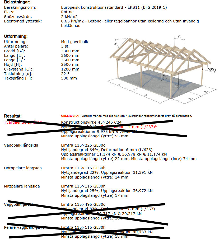 Men att det inte ska räcka med 3st 115*115 limträpelare för min carport har jag nog lite svårt att förstå. Har både haft en firma att räkna ut detta och pratat med snickarna om detta som jag ändå köpt virket igenom, så de borde väl dragit i handbromsen?