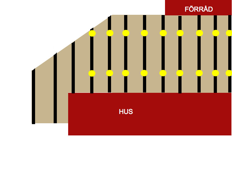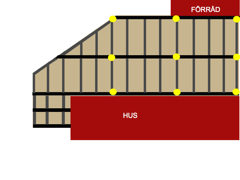 - Vi vill lägga trallen längst med husväggen, ev mönster kommer förstås att få påverka ramen i form av extra reglar osv.