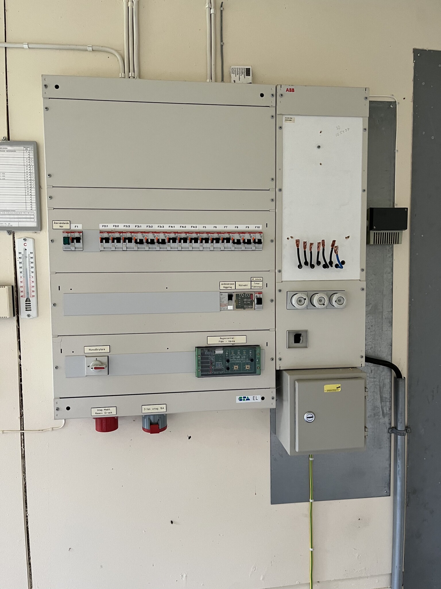 Reservkraftsomkopplaren kan utan problem sitta kvar. Det som är märkt HUVUDBRYTARE nere till vänster är högst trologt omkopplare för reservkraften, jag tycker mig se att den nu står i ett läge där det står NÄT på brytaren.