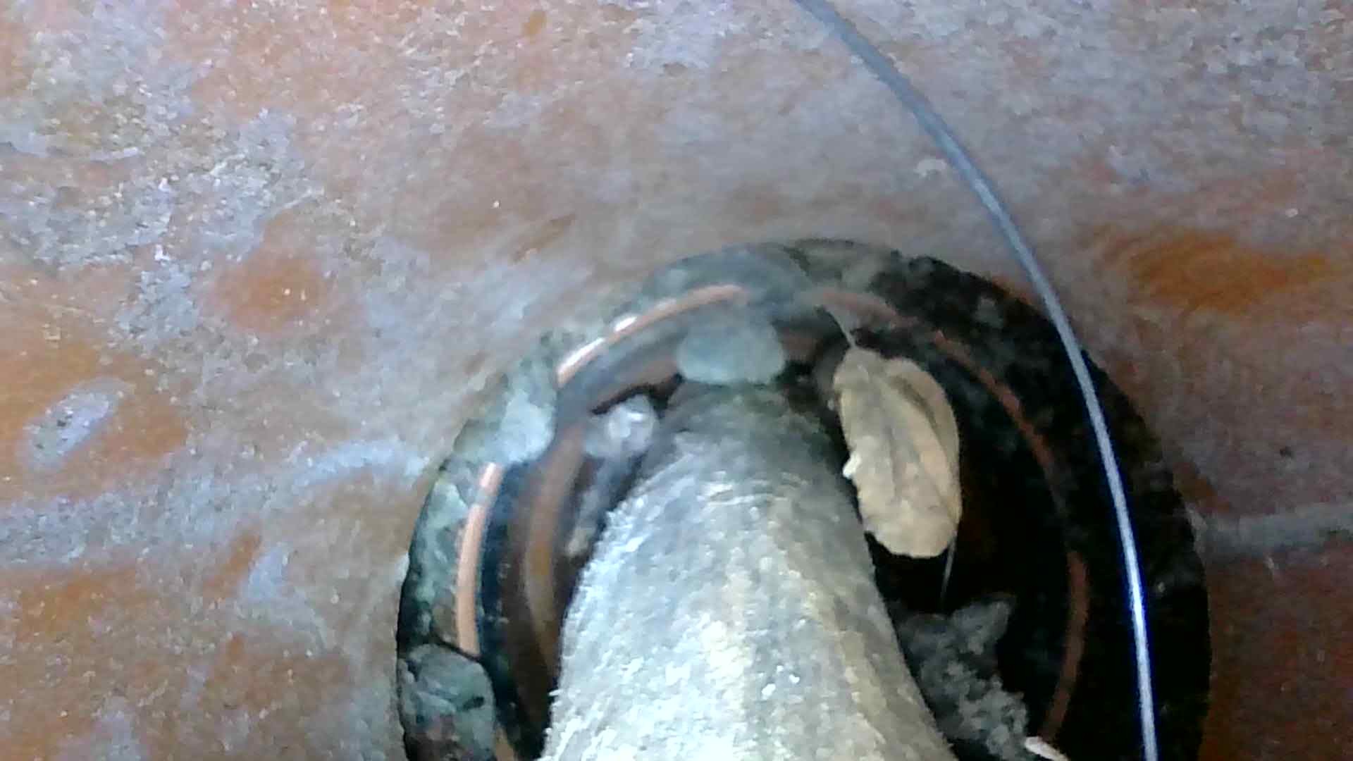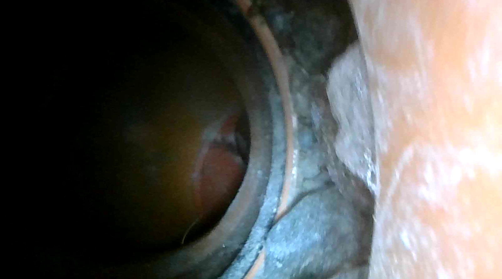 När jag rensade spolbrunnen på pinnar (nedpetade av barn) observerade jag att det ser ut som att röret separerat i skarven mellan den raka delen och böjen. I glipan, på uppskattningsvis några cm, kan man se sten och grus. Röret har dimension 110 mm, glipan är uppskattningsvis några cm bred, lokaliserad 1.5-1.7m under marken ute i en rabatt (se min skiss).