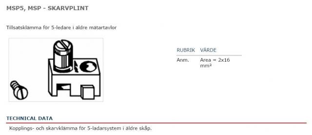 Det står angivet "Area = 2x16 mm2". Jag tolkar det som att den är godkänd för sammankoppling