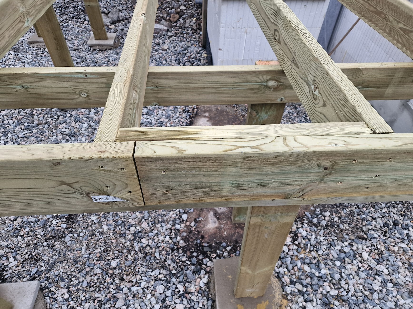 Skarven på ytterramen var inte optimal men bjälkarna har ju ett nära upplag på bärlinan så jag tror inte att det kommer att hända något med den.