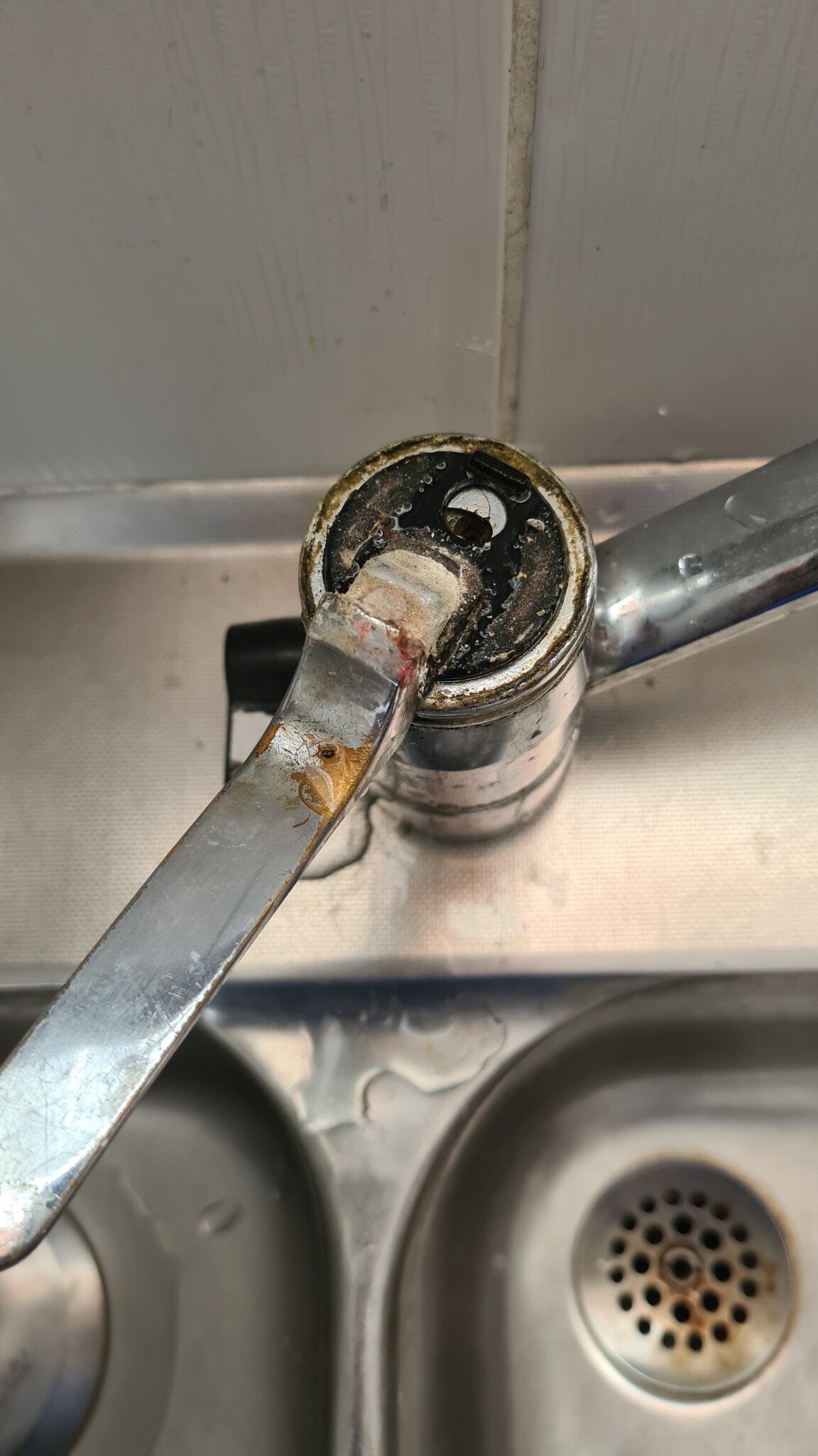 Ska jag bända upp där gula pilen pekar. Vredet vill inte lossna.