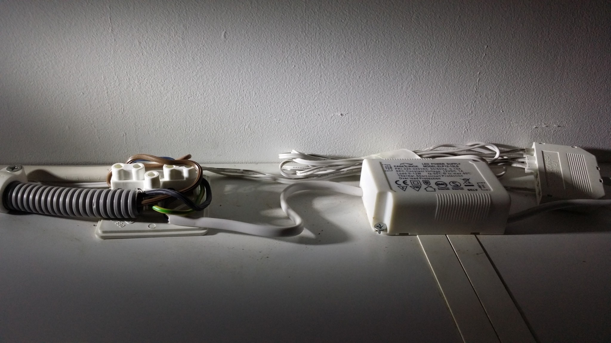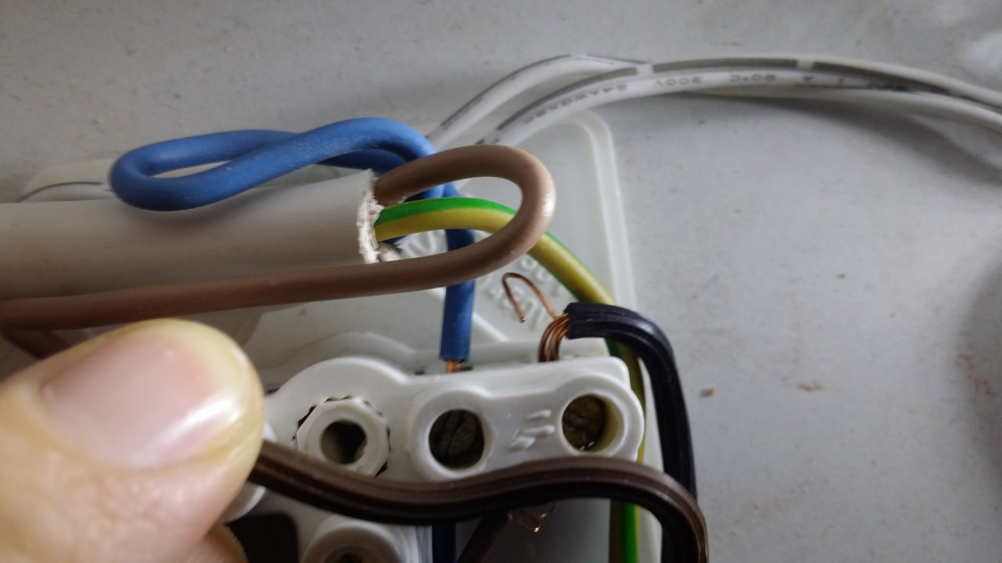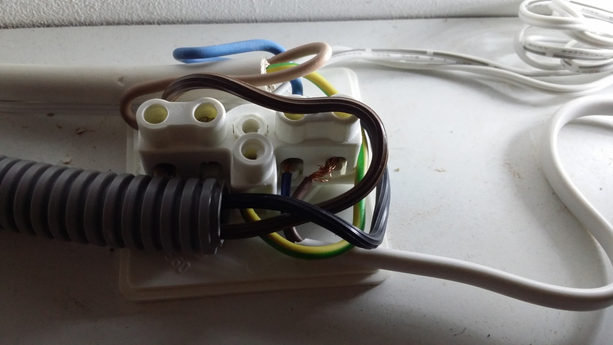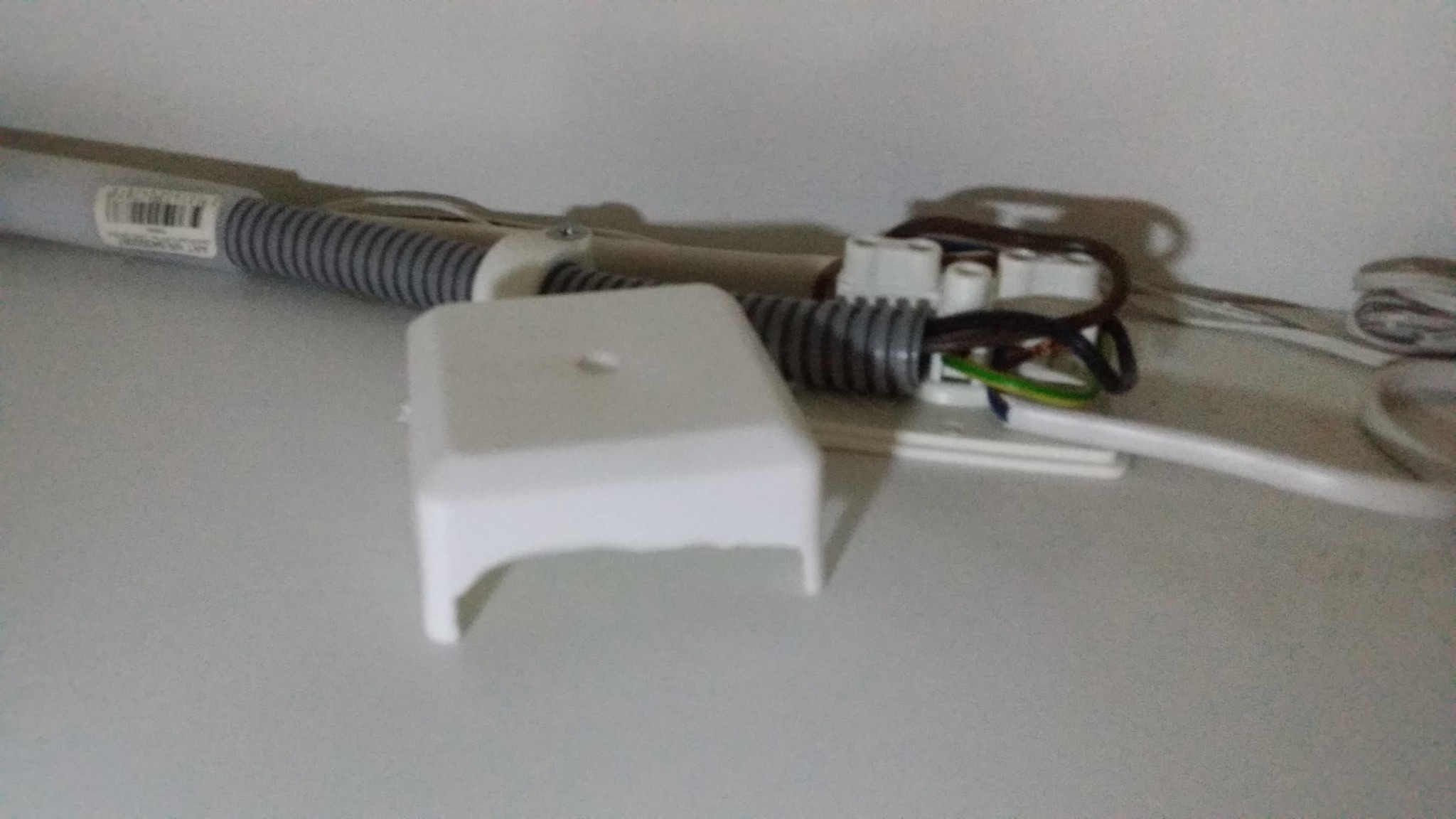 Tyvärr så verkar dom just bara åtgärdat det jag klagade på eller vad tycks om följande koppling för spottarna i köket känns inte helt safe då det vart kortis när jag var uppe och torkade av överskåpet med en trasa och kom åt kabeln i veckan. :eek: