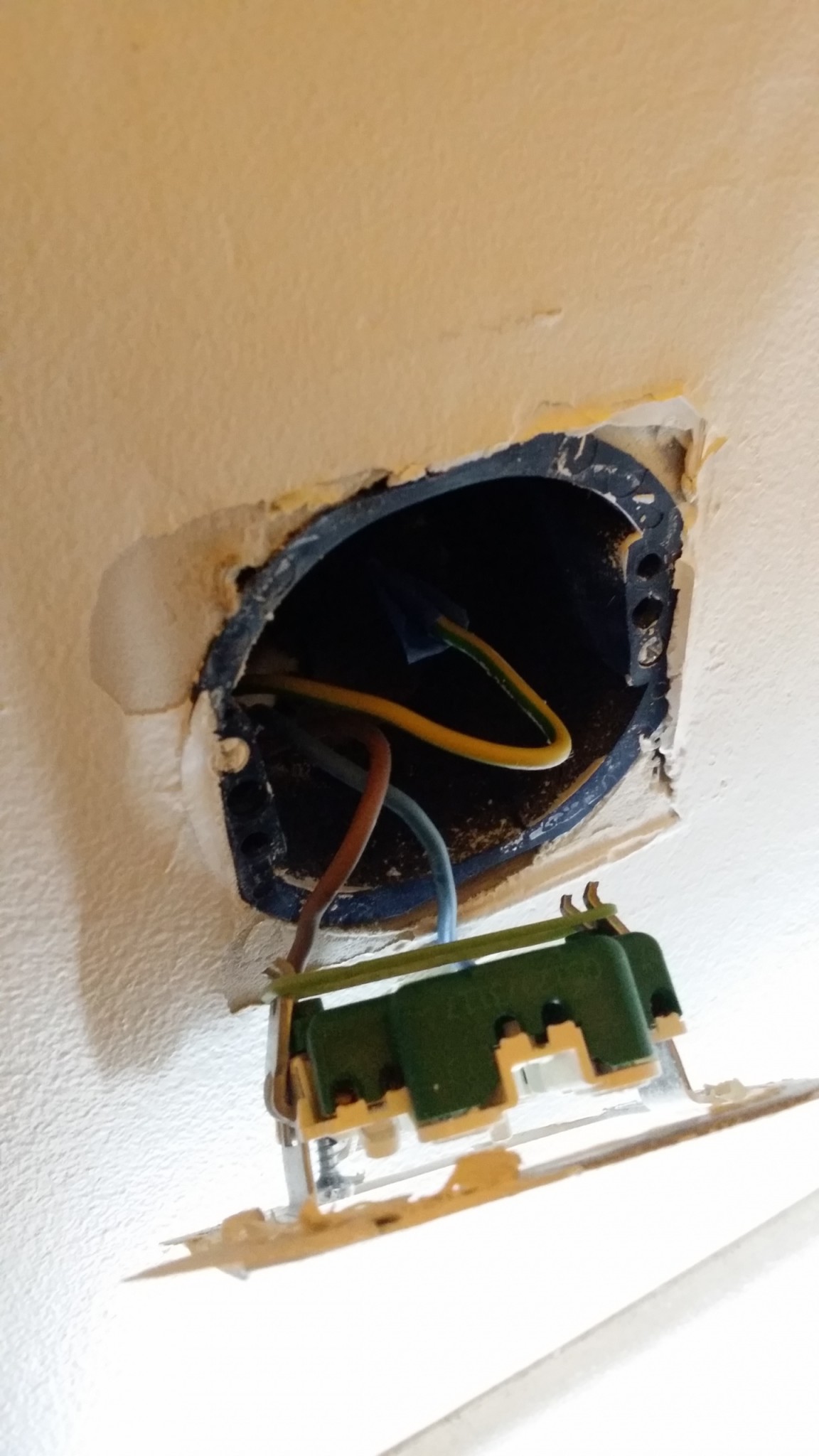 Dom har även lyckas med bedriften att byta ut ett utanpåliggande jordat uttag till ett infällt ojordat uttag trodde inte man skulle behöva be om att få jordadeuttag :wow:detta uttag är inget jag har använt så märkte det inte förän ett långt tag efter då jag skaffade mig en sänglampa.