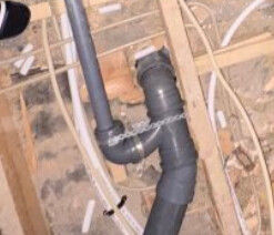 Man ska undvika 90 graders böjar på liggande rör för att det ökar risken för stopp. I det här fallet är det ju en ännu skarpare sväng då den fortsätter efter 90-gradersböjen. Borde ha gått att lösa på ett bättre sätt (speciellt om man hade kunnat grena in den direkt på den stående stammen neråt) men jag tror dom gjort det på det här sättet för att minska risken att spolningen från toan går förbi anslutningen neråt och sätter igen det lilla röret.