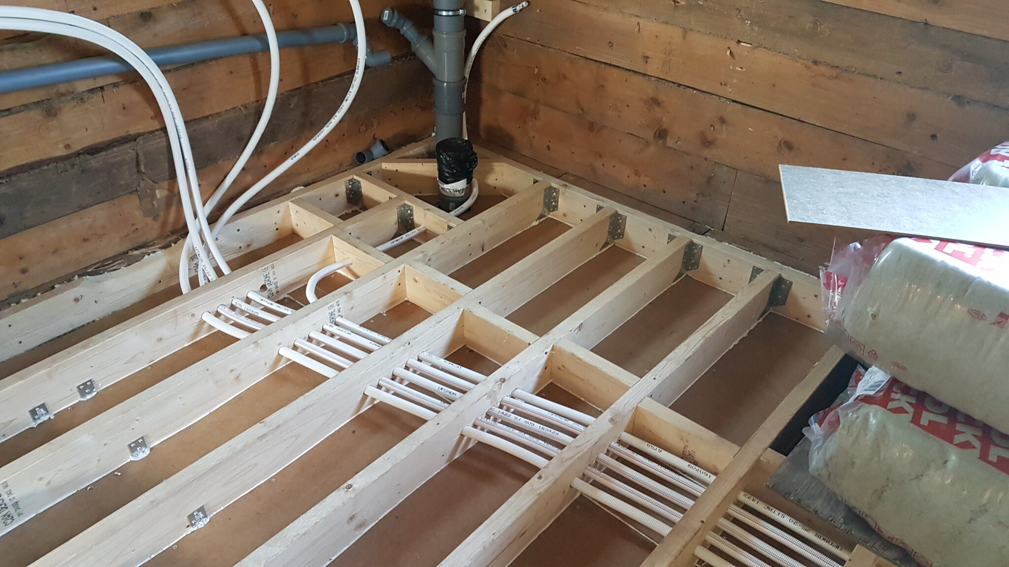 alla slangar går från blandar oskarvat ner i källare till fördelningsrör där.