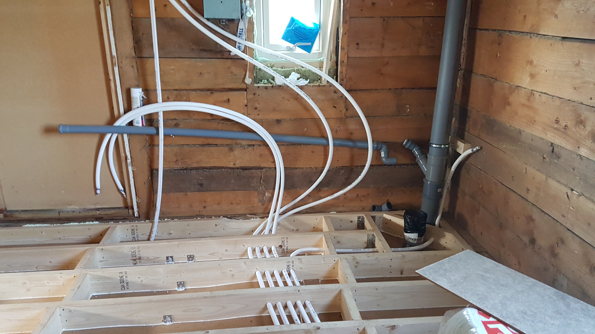 alla slangar går från blandar oskarvat ner i källare till fördelningsrör