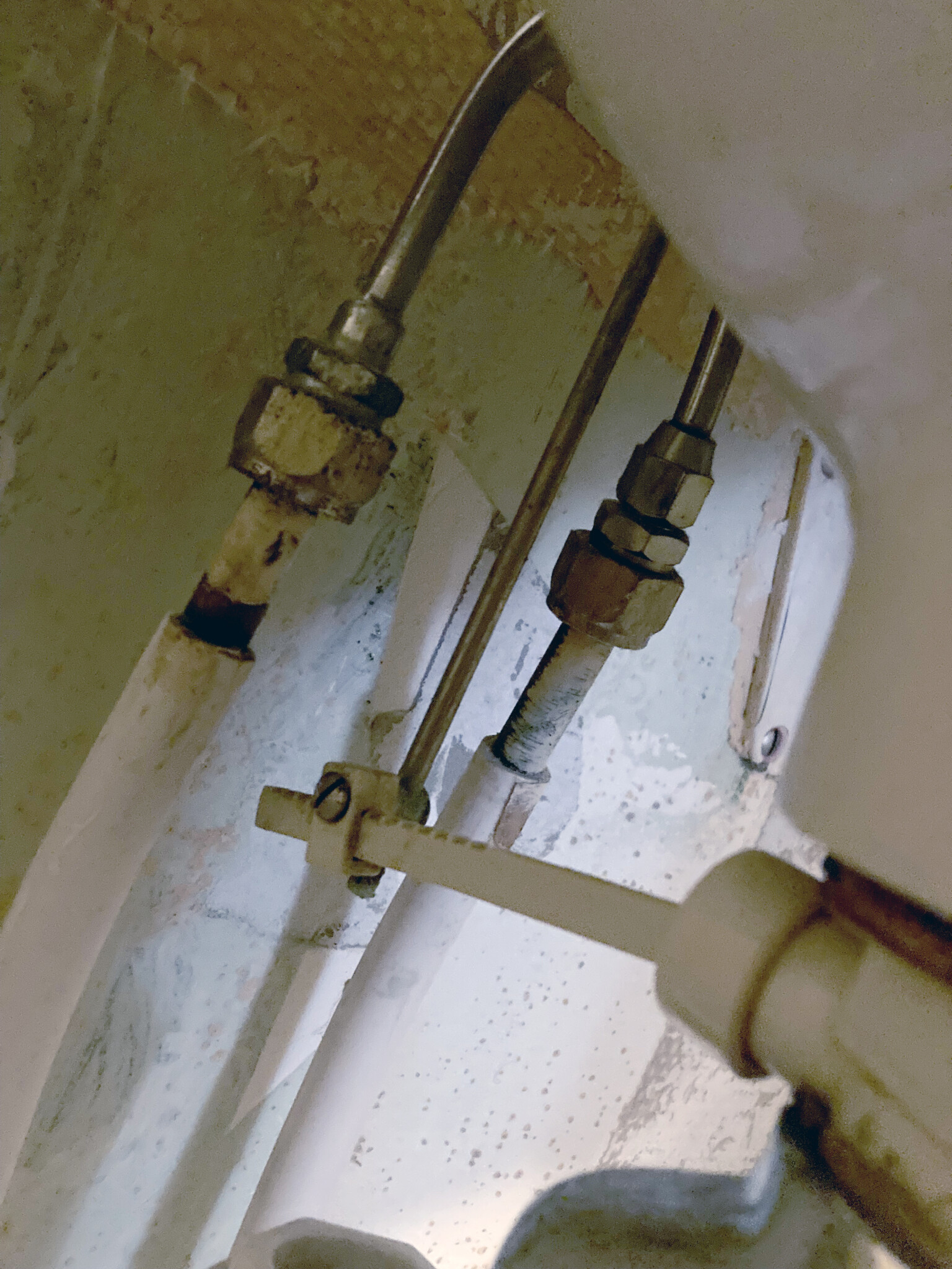 Tänk på att du behöver korta av de nedre prisolrören för att få emellan kulventilen , och när du monterar ny klämringskoppling på dom, så skall du även använda stödhylsa för mjuka rör.