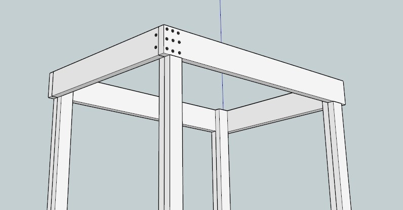 ...som är byggd av reglar 45x90 och 45x170. De långa ramreglarna vilar ju på benen, medan de tvärgående reglarna bara "hänger" fastskruvade i de längre reglarna. Jag tänkte skruvlimma ihop de två reglarna till ben. Funkar det som jag har tänkt? Ett par tvärgående balkar till tänkte jag nog också ha emellan, och så en MDF-skiva som golv ovanpå. Är det rimligt med skruvar så som jag satt dem? För många? Felplacerade? Alla tips mottages med tacksamhet. Loftet är ca 165x120 cm stort och är ca 140 cm högt.