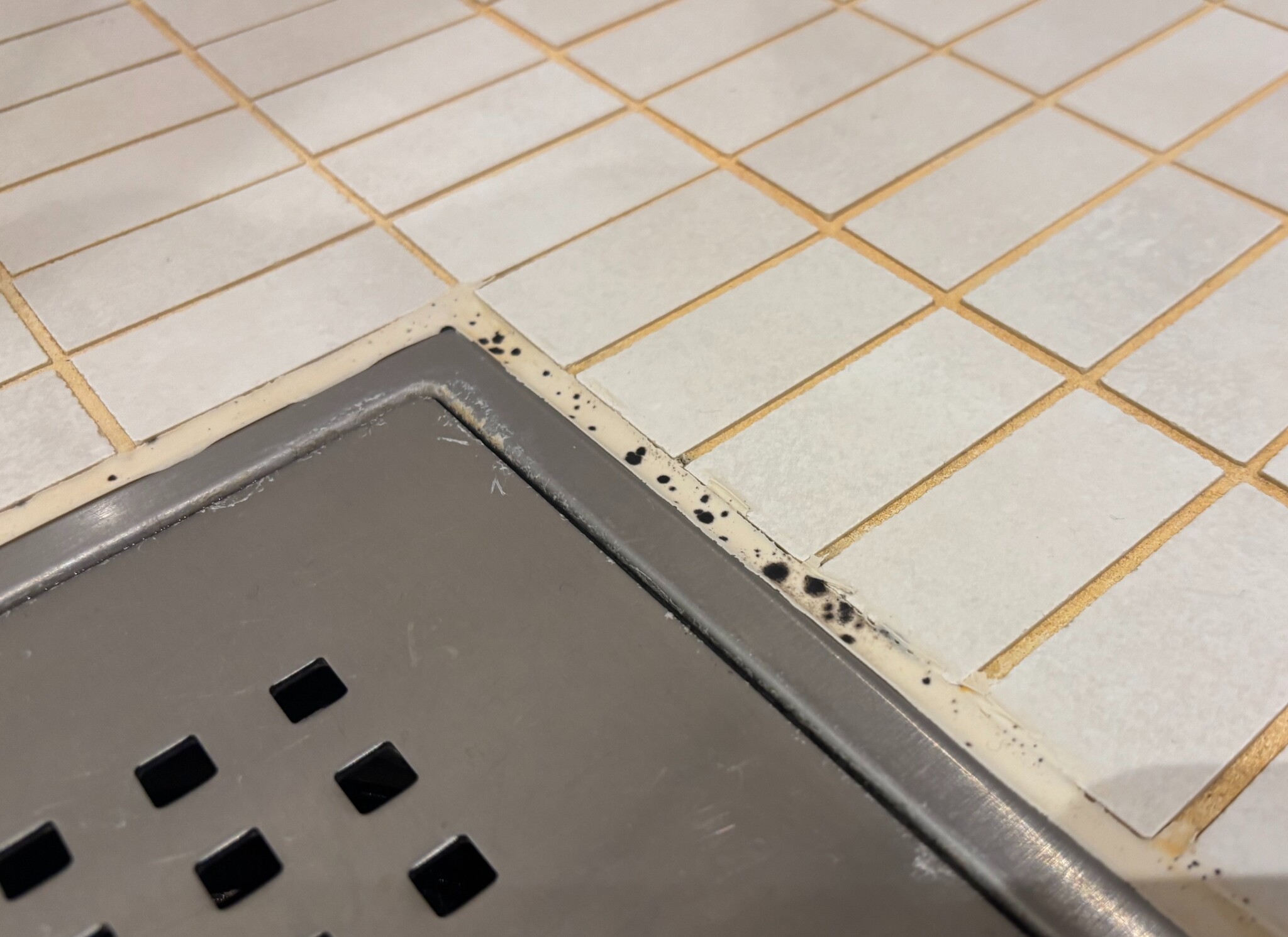 Den första bilden år från väggen där duschen är monterad, och den andra av golvbrunnen. Är det här som jag tror svartmögel? Det sitter inte ytligt och kan inte skrapas bort; jag skar bort en av fogarna och det svarta går in i silikonet, ser ut som att det fyller upp ett hålrum. Fogen är ju inte ny utan har ett antal år på nacken, men det intressanta är dock att det finns en betydligt äldre fog precis i duschen utan en enda sådan prick. Kan det månne ha varit dåligt anti-mögelmedel eller gammalt silikon? Eller borde man fuktighetsmäta och se över ventilationen? Golvytan är våt högst ett par tre timmar efter en dusch, men har inte koll på hur mycket vatten som rinner bakom kaklet, t.ex. bakom blandarens rörmanschett.