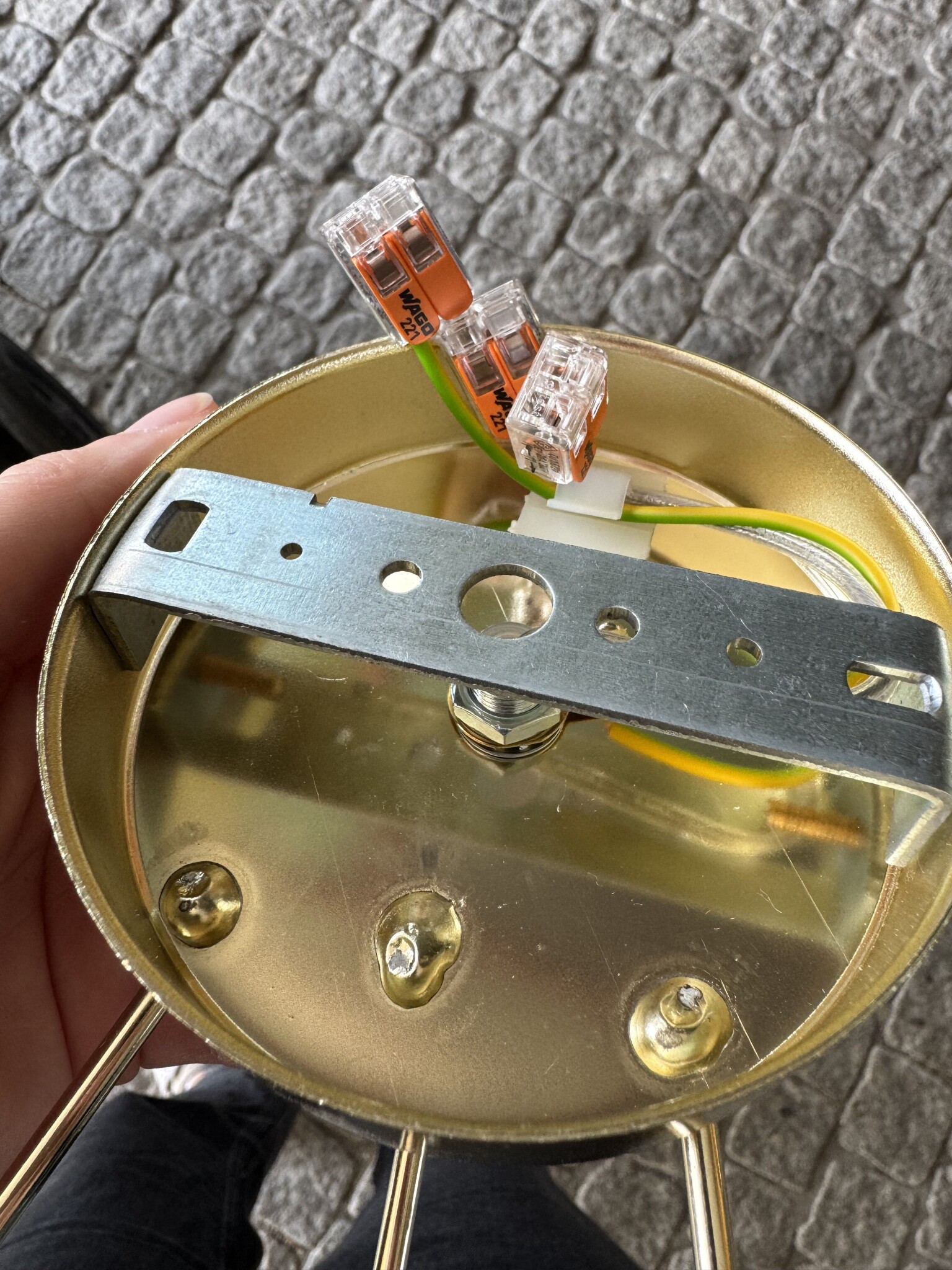 Dels finns det ingen kabelgenomföring i armaturfoten.
