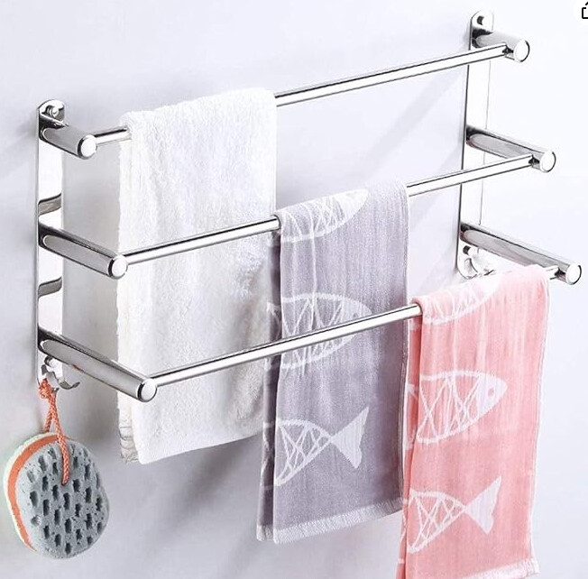 Bauhaus har 4 stänger direkt utanför varandra med 2 fästpunkter, men kromad mässing låter som det håller bättre i längden än aluminium: https://www.bauhaus.se/handduksstang-bemeta-omega-trippel-600mm