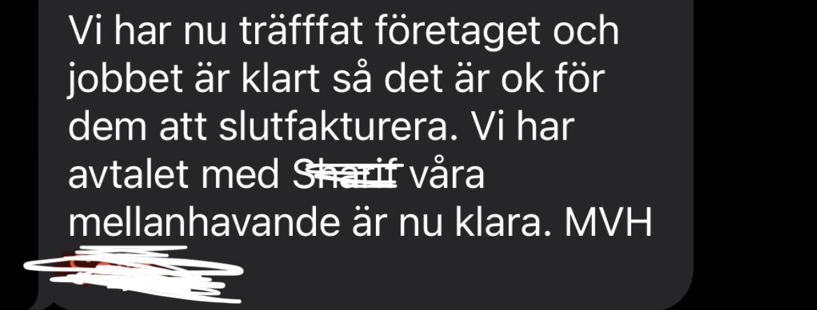 Betalningen betalades inte då och förföll. påminnelse skickades 1v efter förfallodatum och den bestriddes utan grund men med typ chatgpt/AI som skrivit. Vilket är mycket oprofetionellt Och sedan upphörde all kommunikation EFTER att jag gav alla intyg då shareef svor hederligt att betala då mina pengar står parkerade om jag då gav han intyg vilket jag gjorde och sa att nu litar jag på ditt ord. Efter det blev det knäpptyst- helt tyst