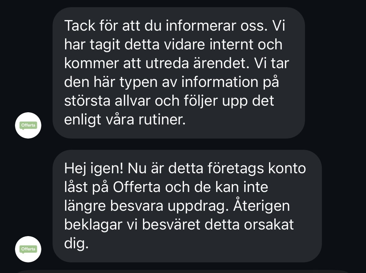 Jag kontaktade iaf offerta just gällande detta företag. Se bild på svaret.