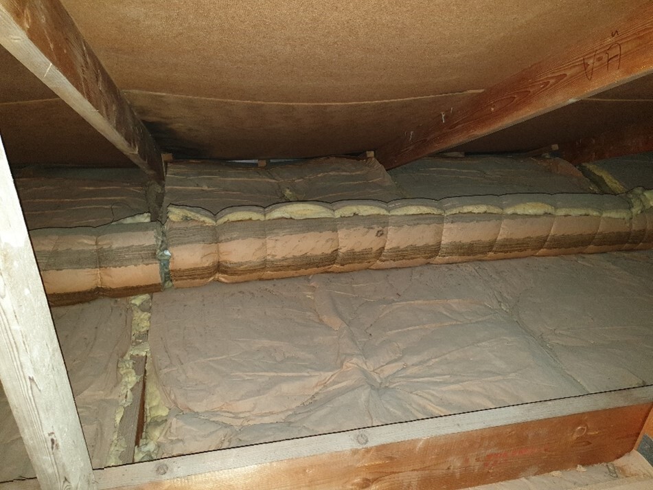 Vi har lagt in ett ca 5 dm djupt lager med lösull på vinden (se bild 1), för att isolera villan bättre. Innan vi la in lösullen så hade vi rätt stor vindsgolvyta (bild 2), och där förvarade vi många saker som tål den varierande temperaturen och fukthalten på en ventilerad vind. Vid sidan av golvet ligger glasfiberull/gullfiber, som ser ut att vara max 10 cm djup, med papp ovanpå (bild 3 & 4). Troligtvis finns det glasull även under golvet.