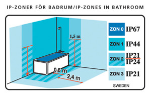 Hittade de nya uppdaterade zonbeskrivningarna som Patrik nämnde och i område två är det mycket riktigt IP44 som gäller. Hide a lite:s mini spot (E 74 513 50) som är klassad för IP44 kräver både större monteringshål, djupare inbyggnad och går dessutom på 700 mA och kan därmed in samköras med mina andra fönstersmygslampor som går på 350 mA (E 74 525 02). Får stryka hela fönstersmygsprojektet för badrummet vilket är lite tråkigt, men med mindre att jag byter fönstret till ett mindre så går det inte att genomföra. Har tegelfasad så ett hastigt fönsterbyte är inte något jag tar på mig.