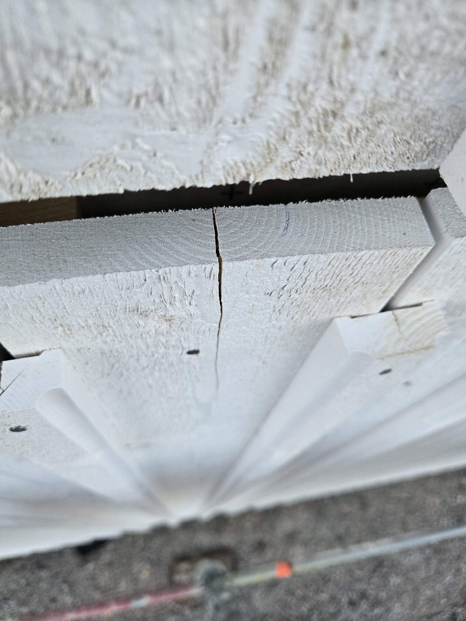 Såna där sprickor blir det när man använder virke som är hyvlat och finsågat på sådant vis att kärnsidan måste vändas inåt. Det kommer att spricka betydligt mer framöver. Oroa er inte.