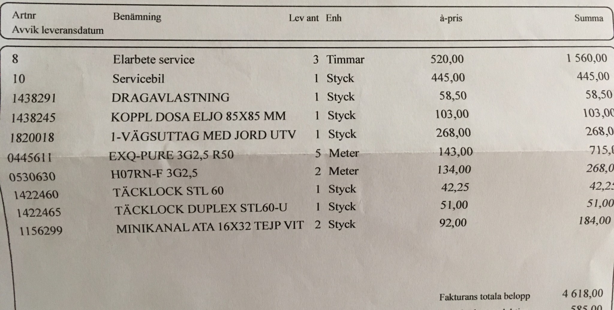 Är det såhär det kostar för elmaterial nuförtiden?