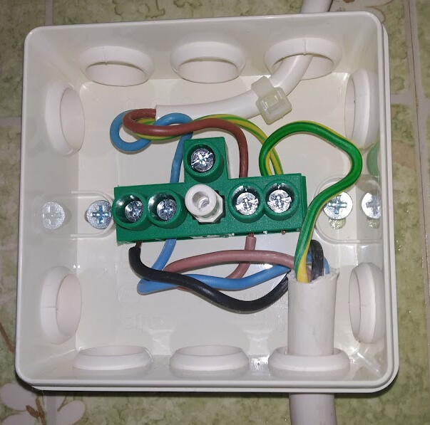 Eftersom det finns en outnyttjad svart som skulle, om den använts, undanröjt eventuella frågetecken så känns det regelvidigt att använda blå ledare som ingående fas matning till kopplingsboxen.