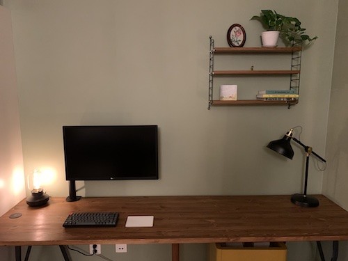Jag funderade på det men jag vill ha så få synliga kablar som möjligt. Jag byggde en liten datorhylla under skrivbordet och skärmen sitter med en arm ner i skrivbordet, så nu ser man faktiskt ingen kabel alls (har trådlösladdning för mobil och magnetupphängning för min klocka under skrivbordet).P Pin skrev:Nu sitter allt redan på plats under bordsskivan, men hade det inte varit mer praktiskt att ha strömbrytaren och kanske ett uttag ovanpå bordsskivan för att lättare komma åt? Eller kanske inte blir tillräckligt snyggt. Skulle ju kunna placeras bakom där dator och skärm ska stå. Överkurs infällda i skivan.